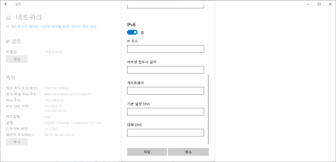 윈도우 DNS 서버변경 IPv4 IPv6 인터넷보안 우회 활성화