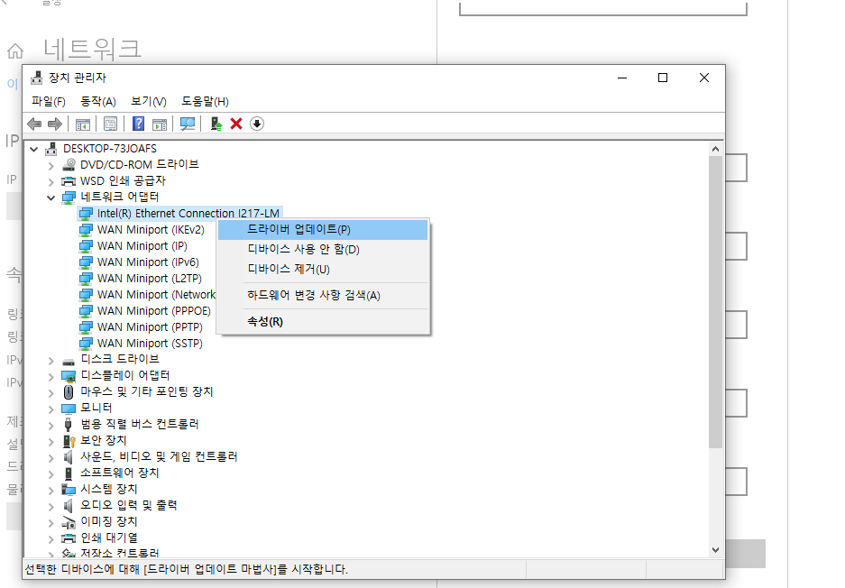 | 윈도우 업데이트 후 인터넷 끊김 | 네트워크 드라이버 충돌 | 장치 관리자 드라이버 재설치, 이전 드라이버로 롤백 |