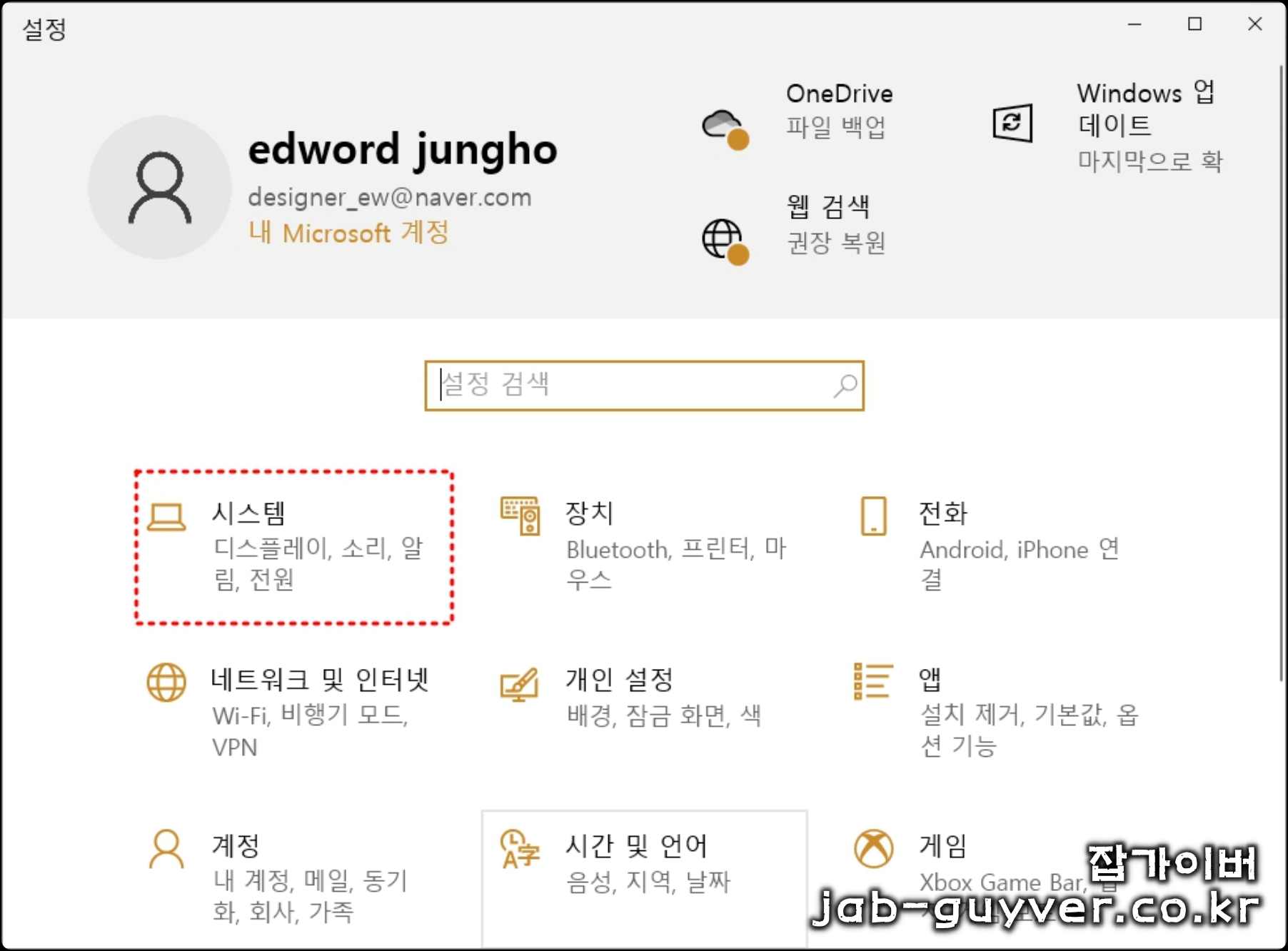 윈도우 키 + i를 눌러 설정창을 실행 후 시스템으로 들어갑니다.
