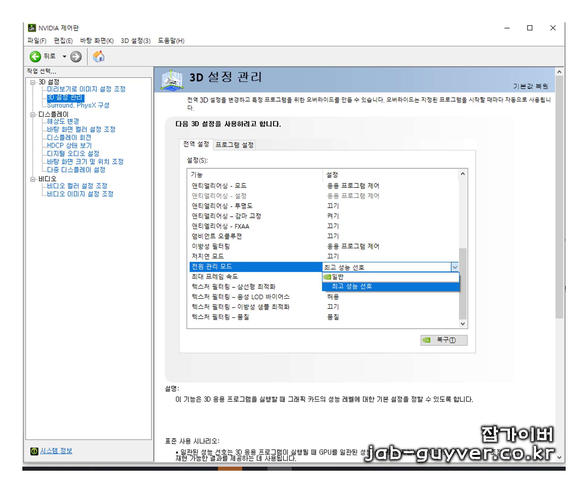 - [IT 리뷰/윈도우 Tip] - 엔비디아 그래픽카드 드라이브 설치 및 Nvidia 제어판 3D게임 최적화 설정
