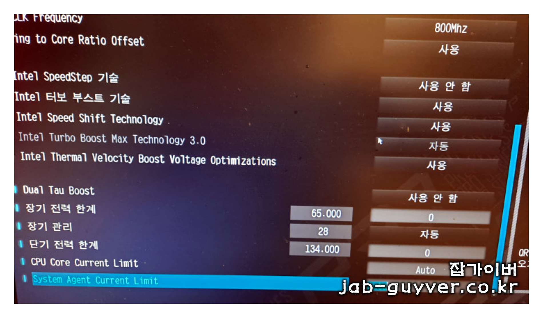 - 메인보드 내 전원관리 옵션 on/off 문제 (off)