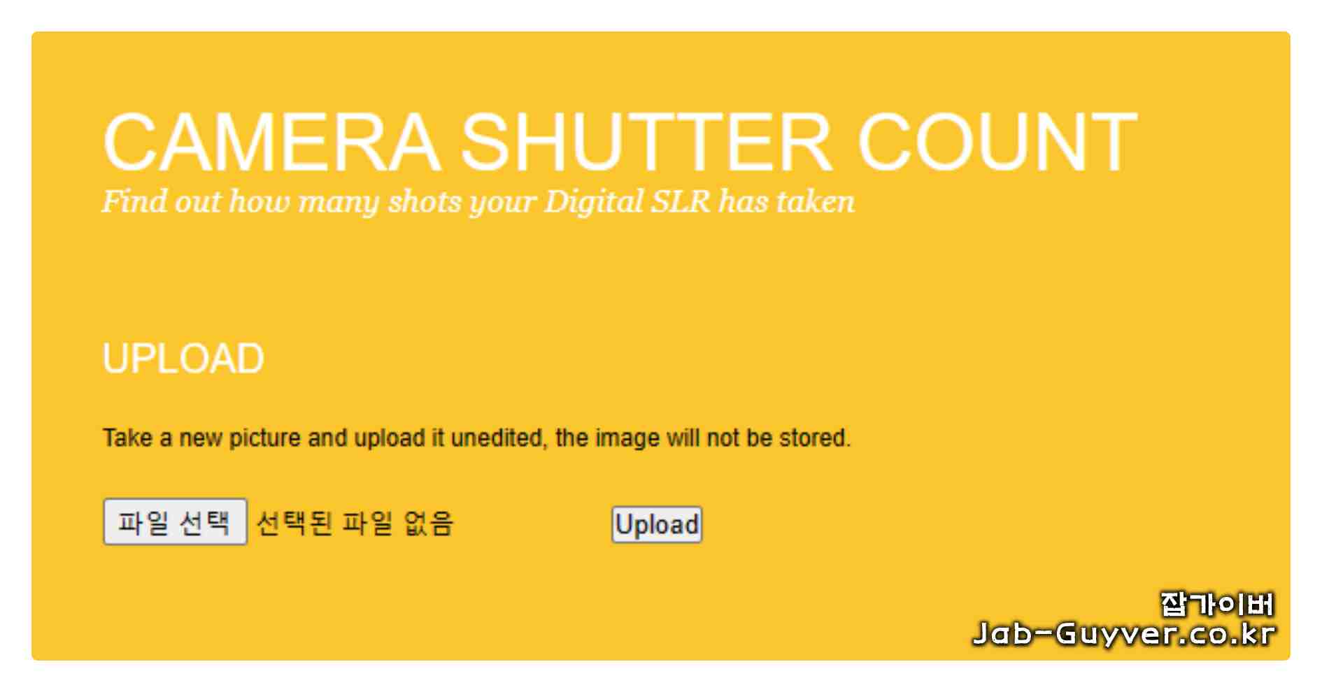 가장 쉽게 카메라 컷수를 확인하는 방법은 별도의 프로그램을 설치하지 않고 아래 카메라 셔터 카운터 홈페이지를 통해 사진을 업로드합니다.