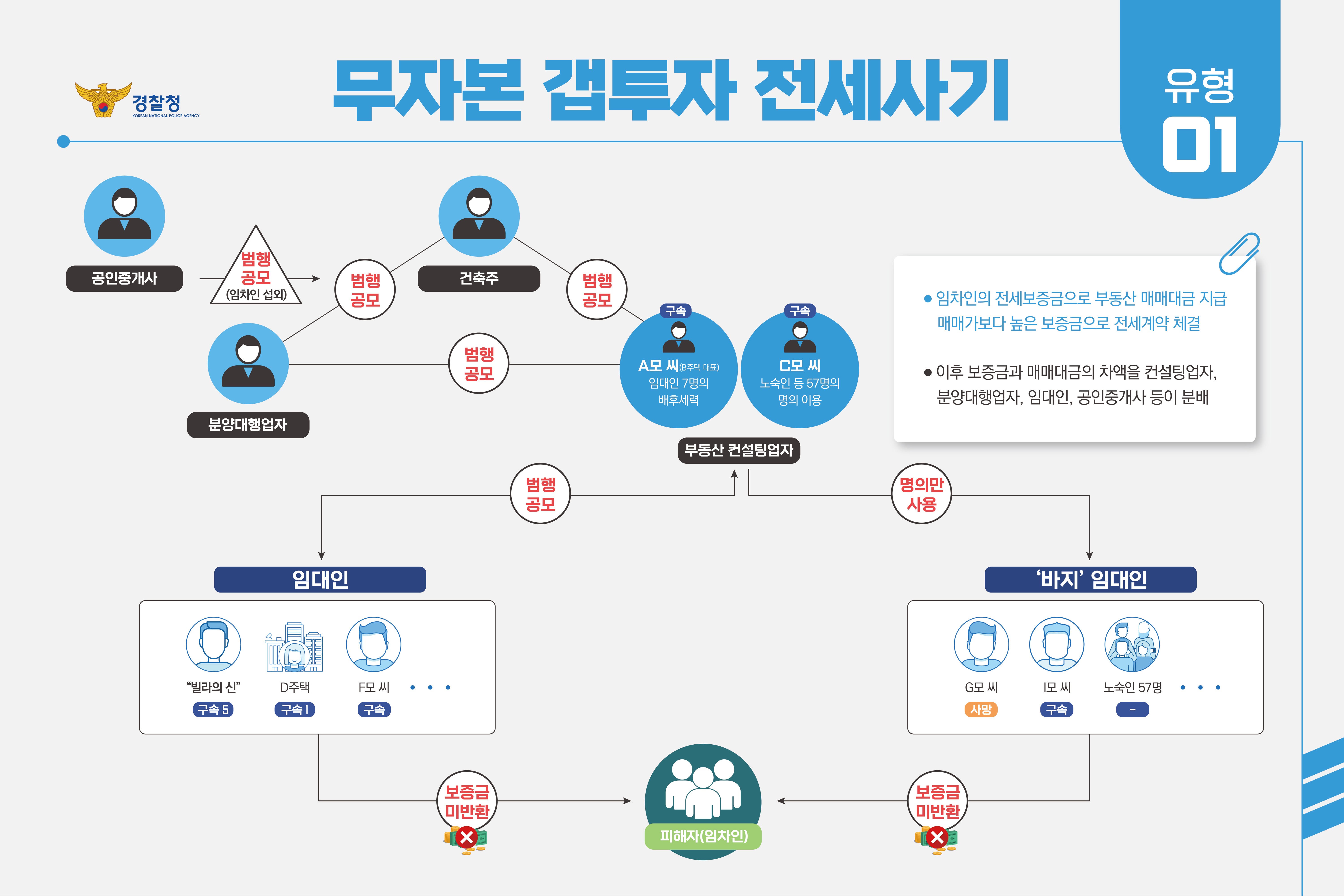- 불법 중개인 : 불법으로 공인중개업소를 차려 여러 세입자와 전세계약을 체결함