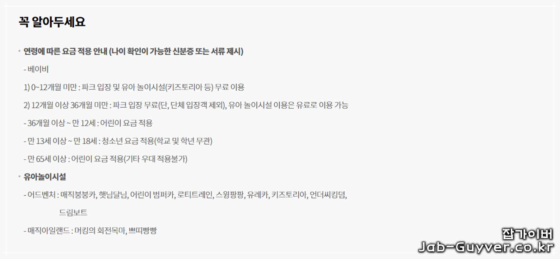 - 휴무일: 매월 2번째와 4번째 일요일 운휴시설: 매직붕붕카, 그럴싸진관 (기상상태에 따라 운행 중단될 수 있음)