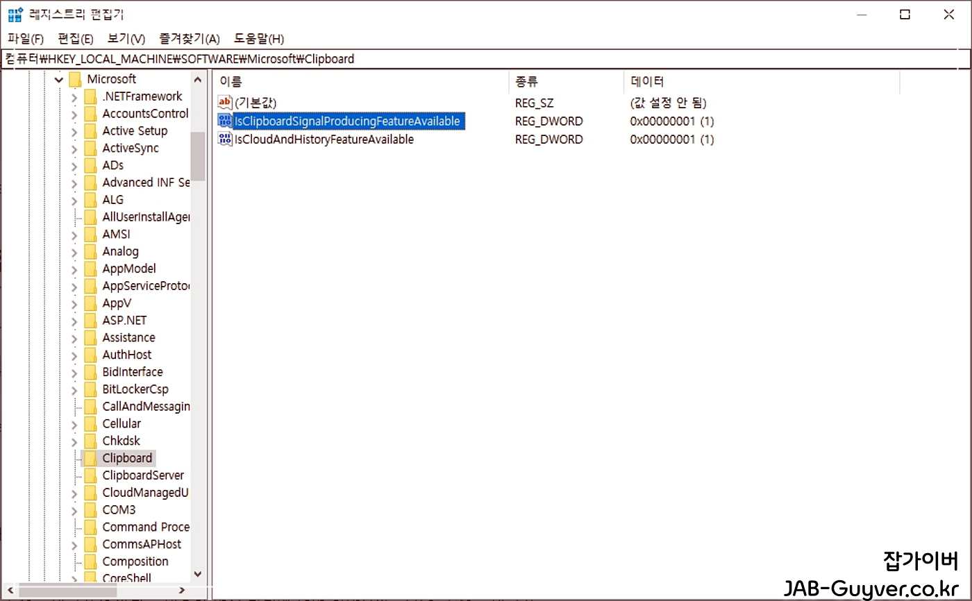 컴퓨터\HKEY_LOCAL_MACHINE\SOFTWARE\Microsoft\Clipboard