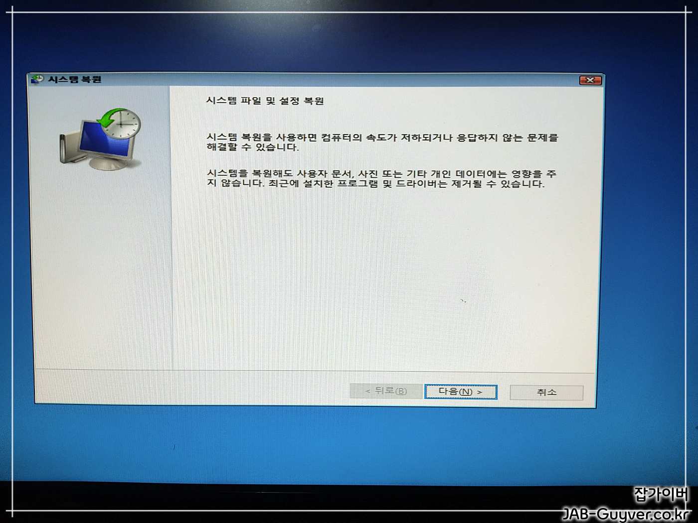 이후에도 윈도우에서 복사 붙여넣기가 계속 안된다면 문제가 발생하기전 상태로 시스템을 복원합니다.