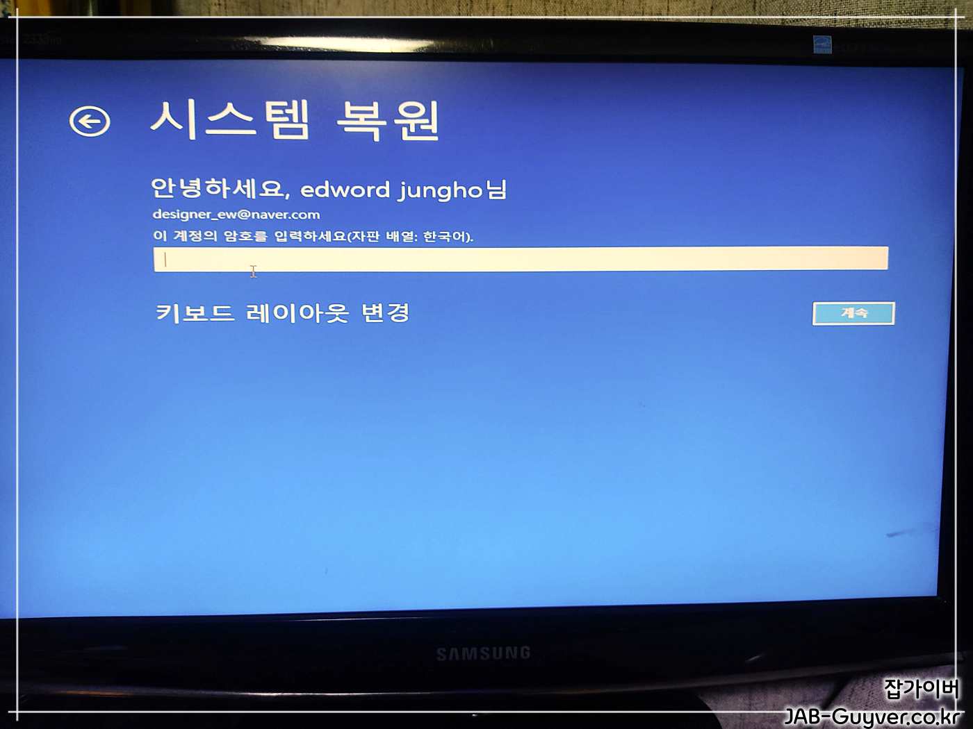 사용자 계정과 암호를 입력하고 계속 버튼을 클릭합니다.