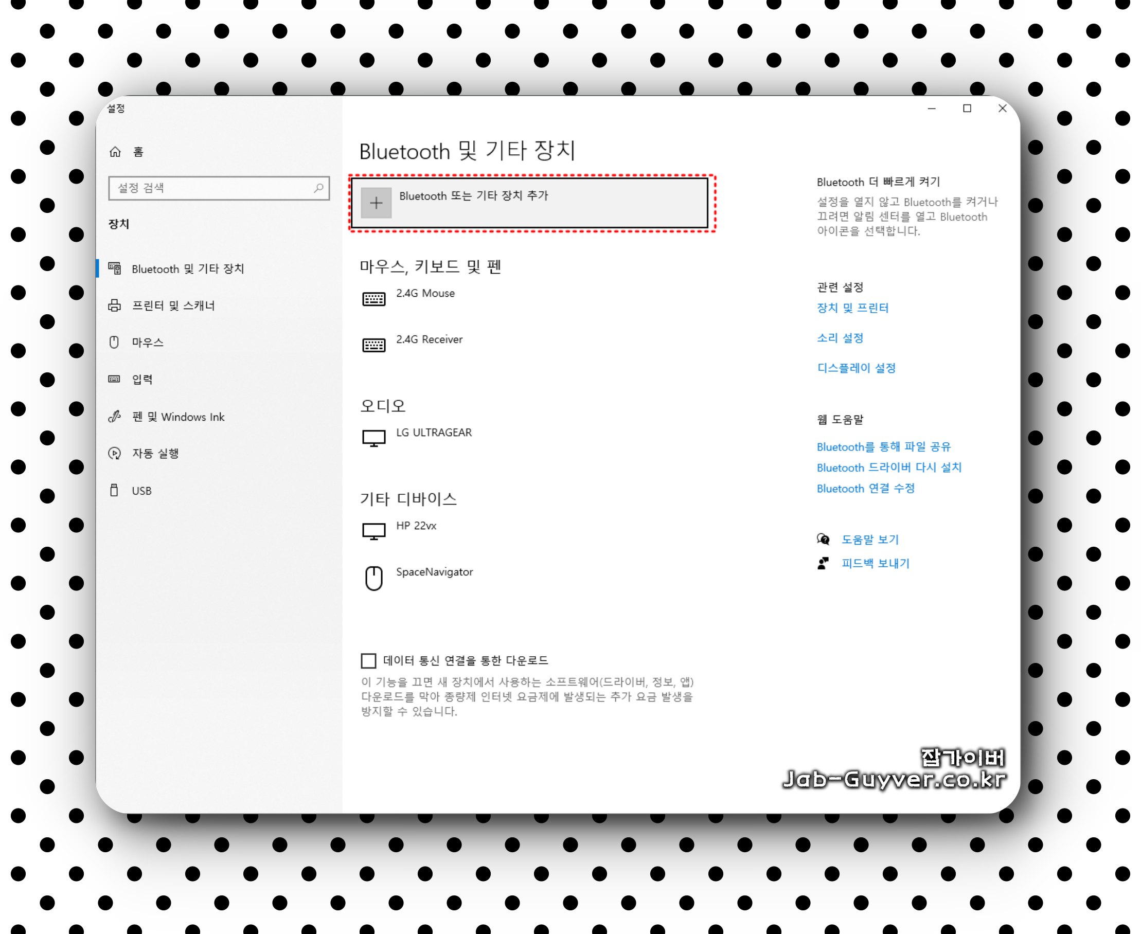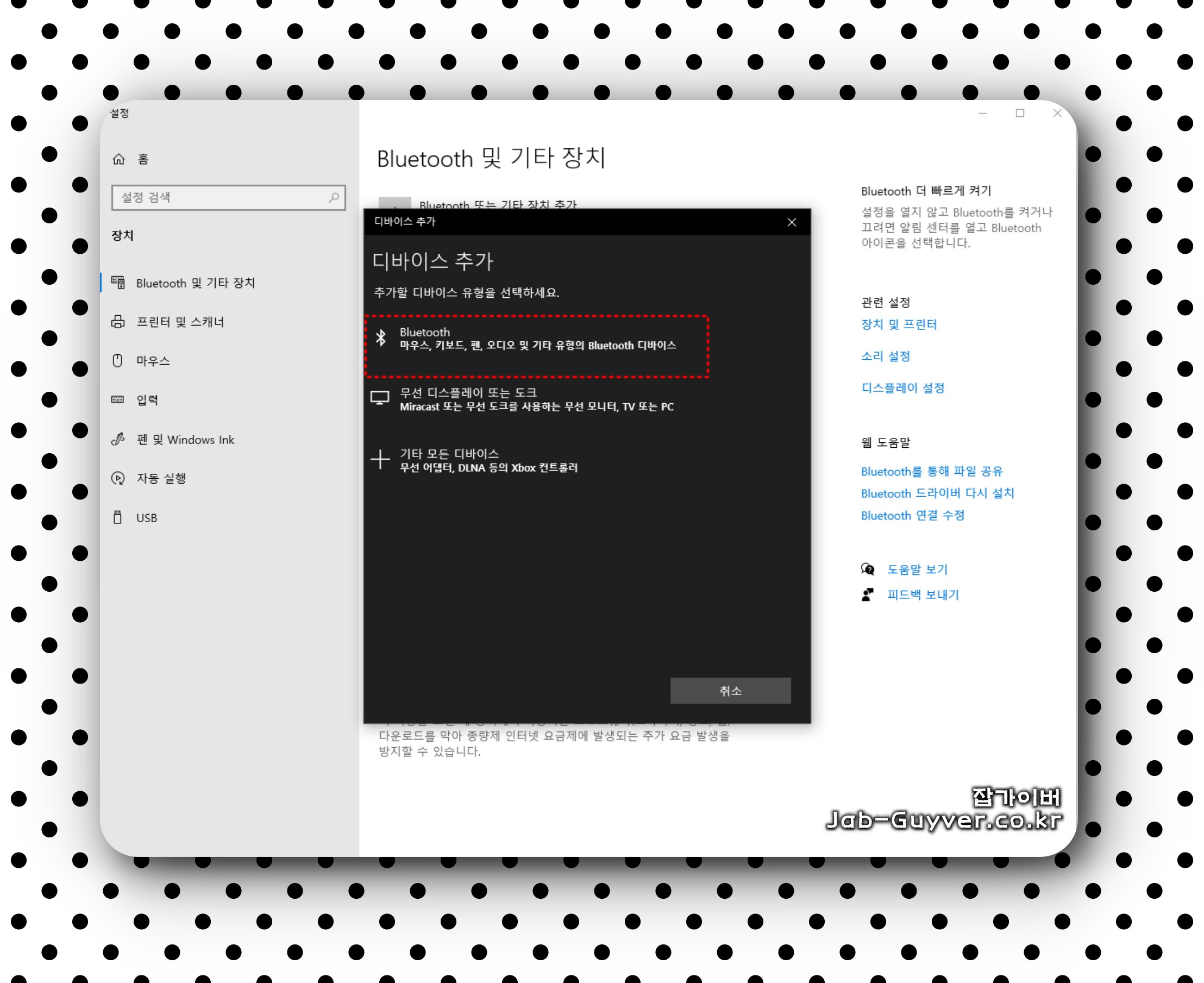 블루투스 추가를 통해 근거리파일공유를 하고자 하는 PC를 블루투스로 서로 연결합니다.