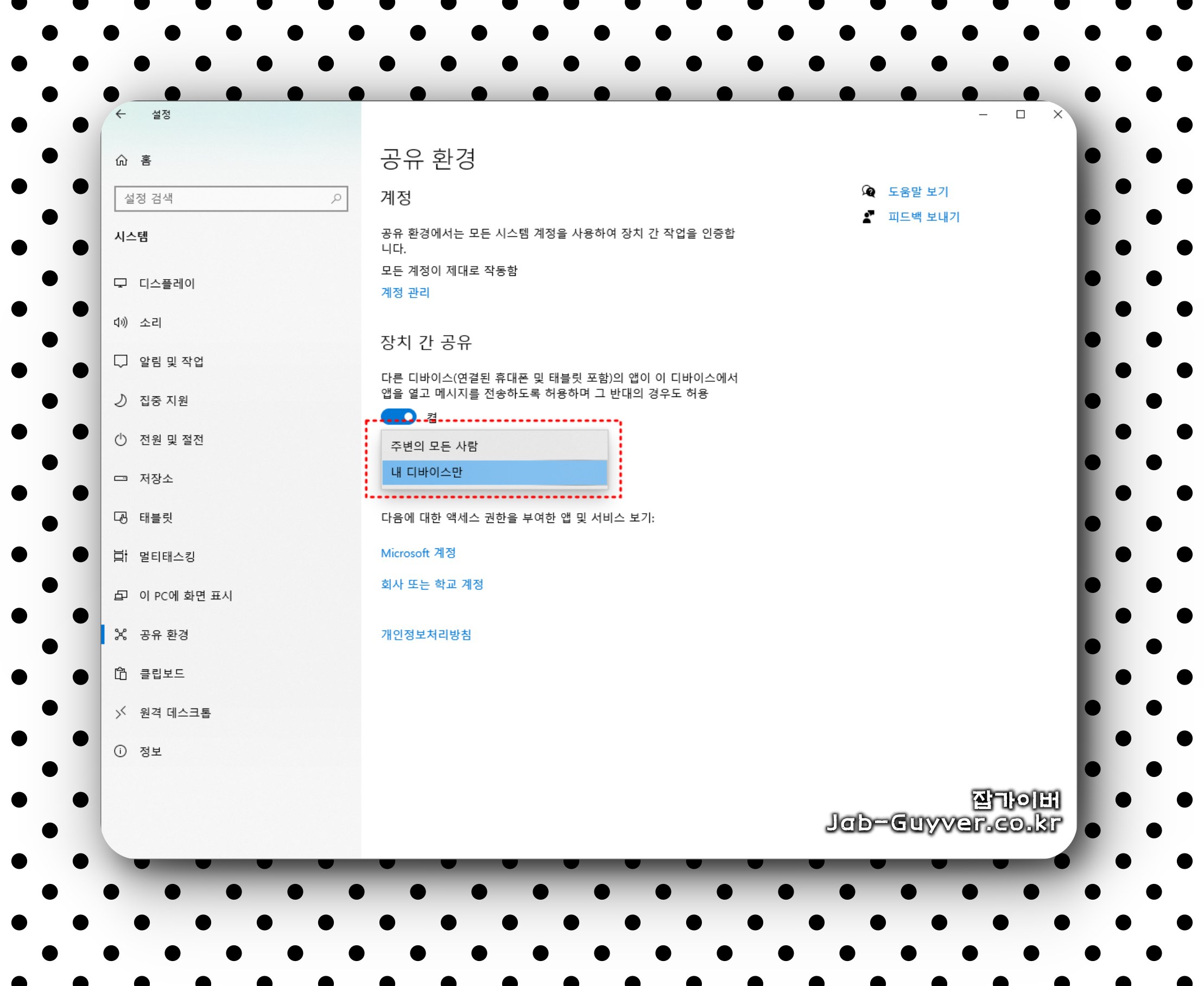 윈도우10 근거리공유 Nearby Sharing 설정 및 안될때 - 노랗IT월드