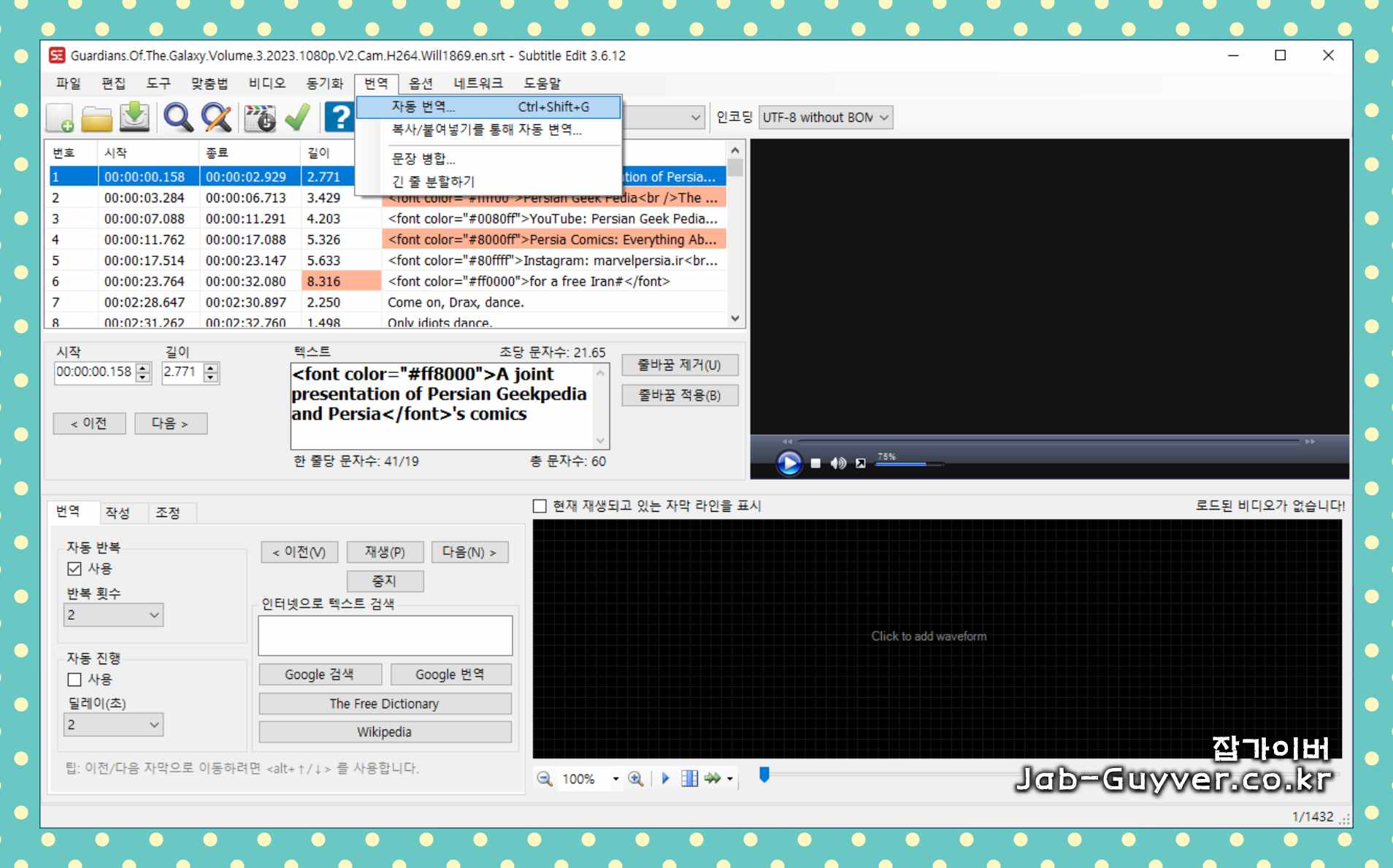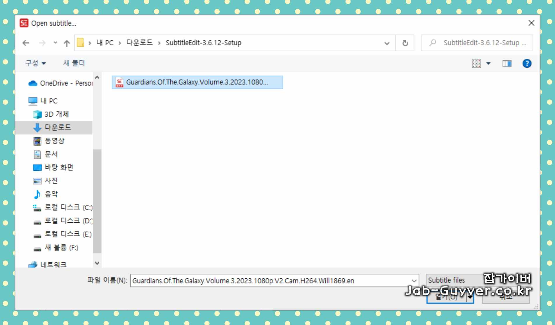 저 같은 경우 이번에 개봉한 가디언즈오브 갤럭시 3 2023.srt 자막을 불러옵니다.