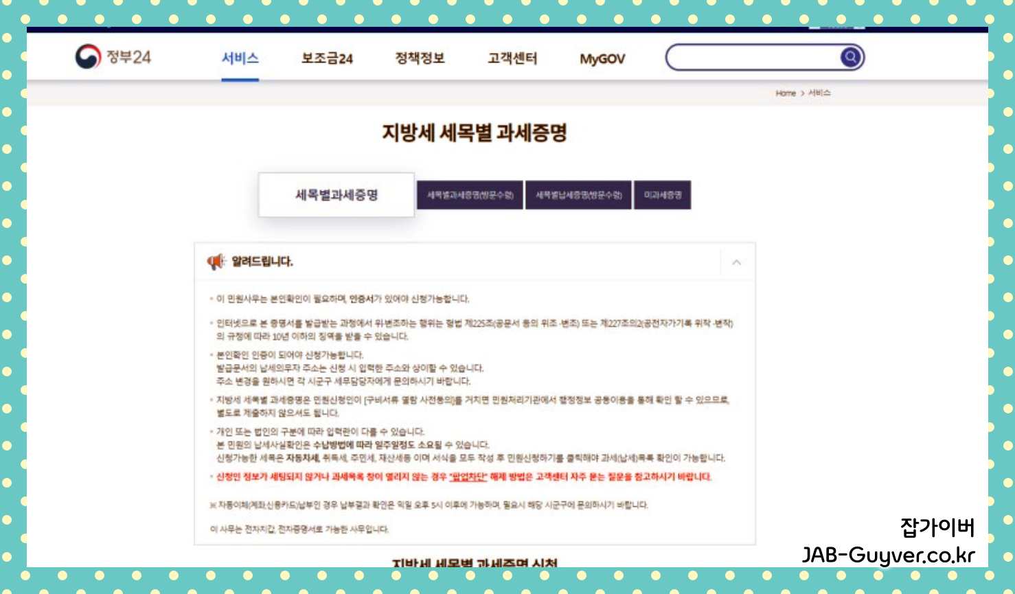 지방세 세목별 과세증명서 수령방법