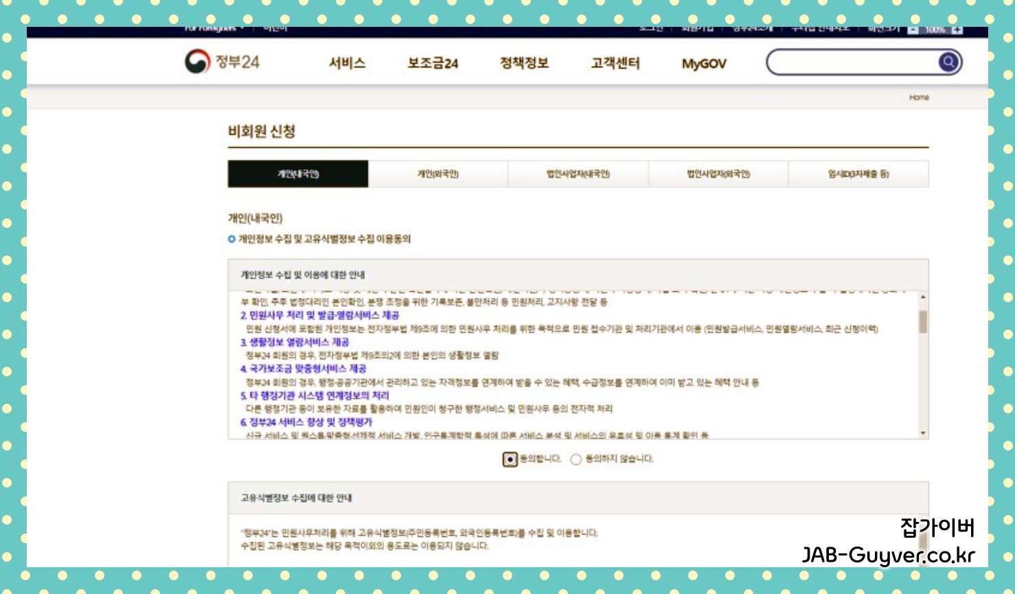 내용을 읽고 동의를 선택 개인정보를 작성해줍니다.