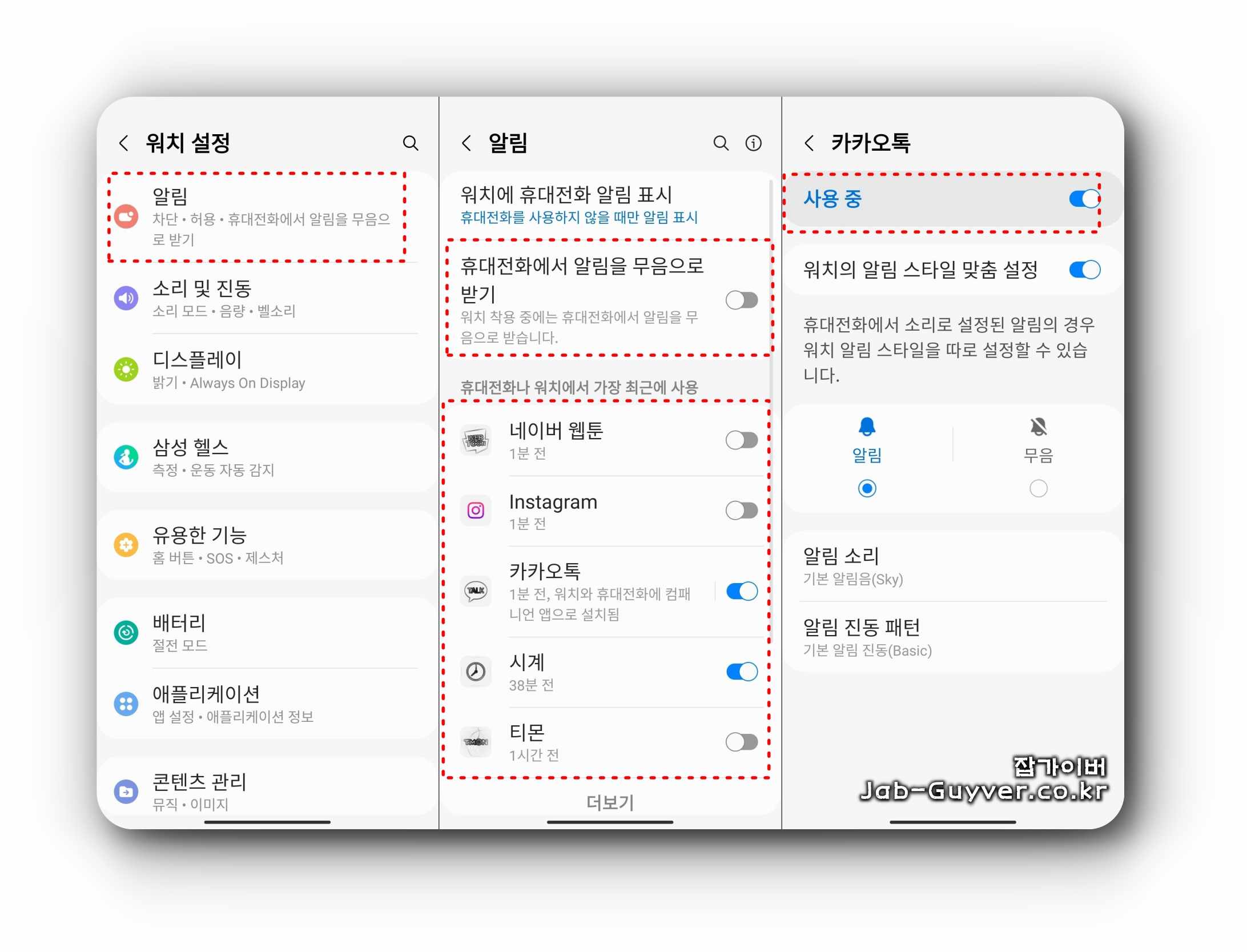 - [IT 리뷰/갤럭시워치] - 갤럭시워치4 카카오톡 알림끄기 및 활성화
