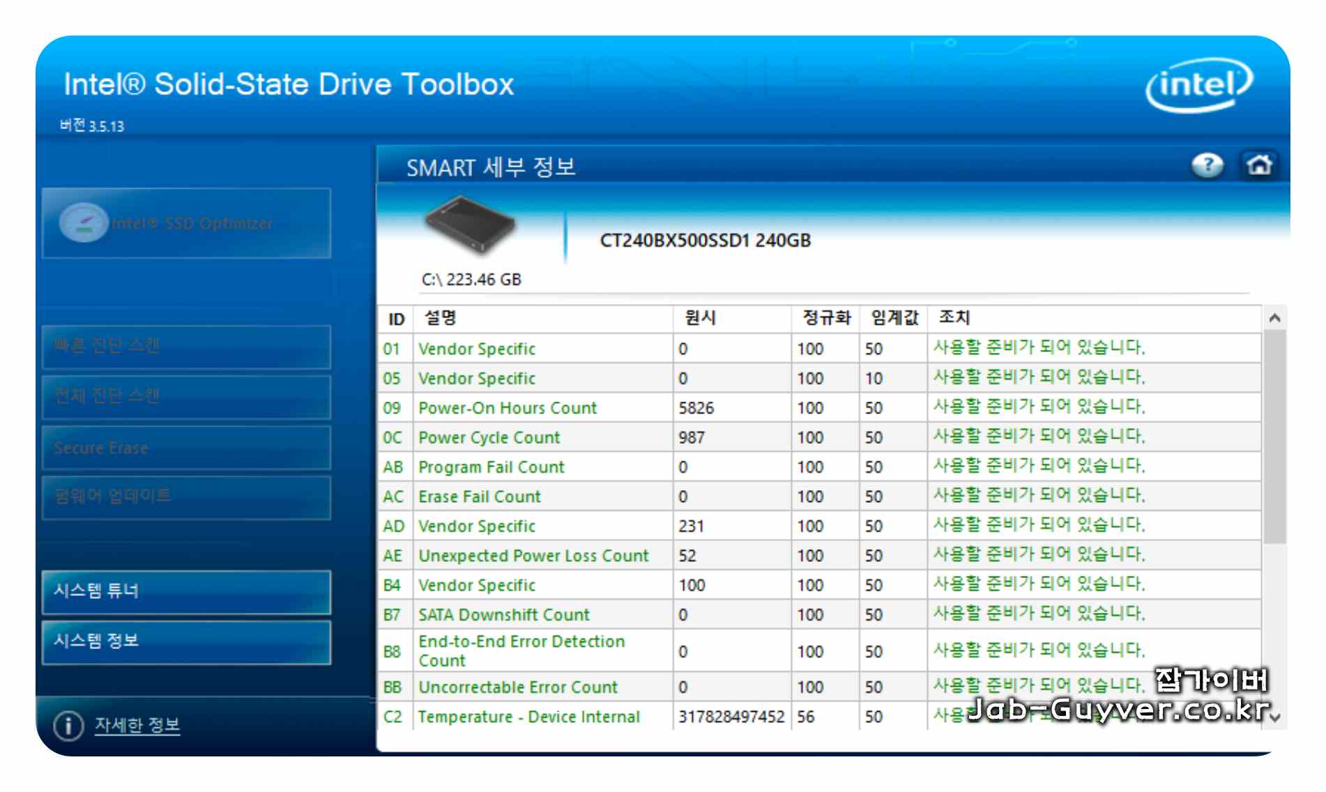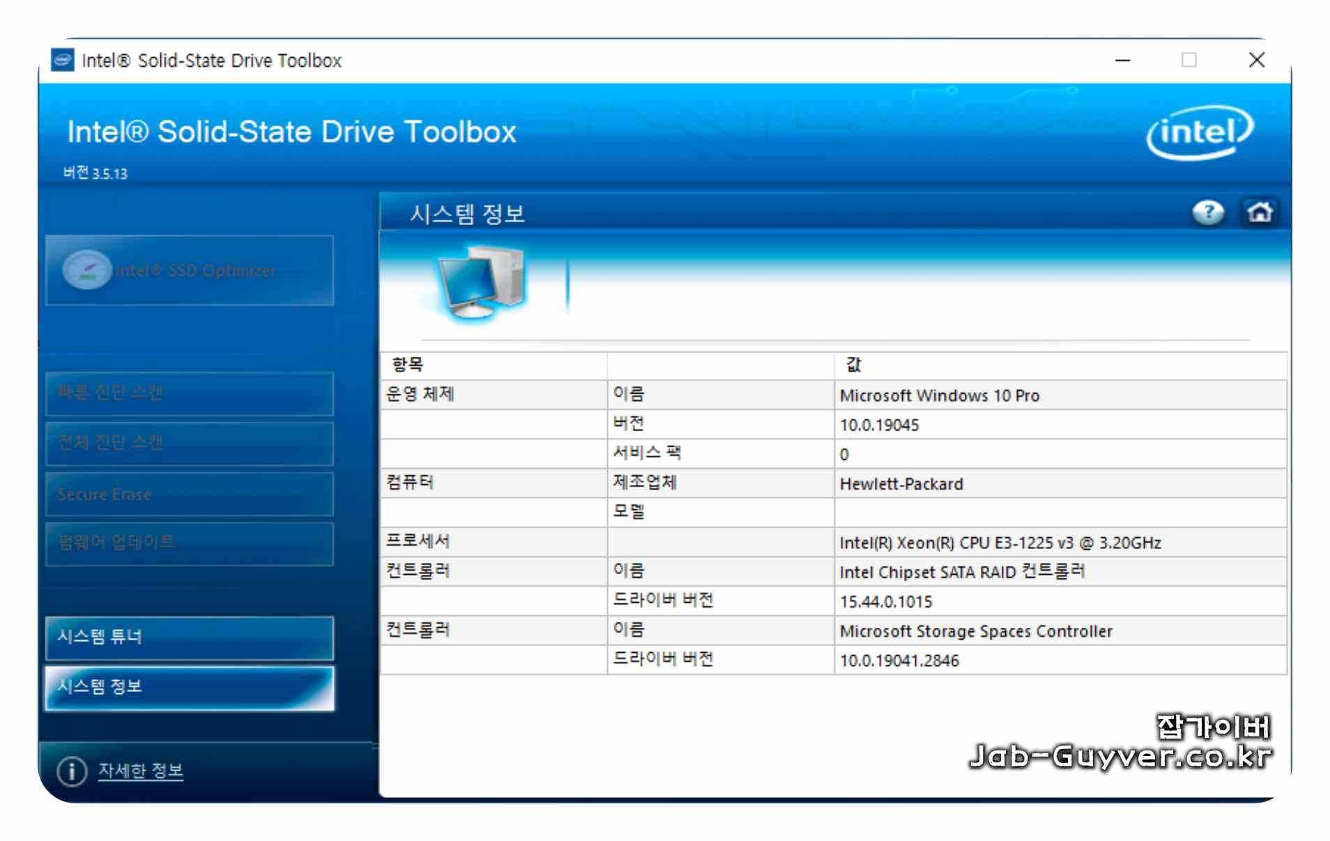 인텔 SSD ToolBox v3.5.13 (인텔 SSD 관리 유틸) | 케이벤치 다운로드