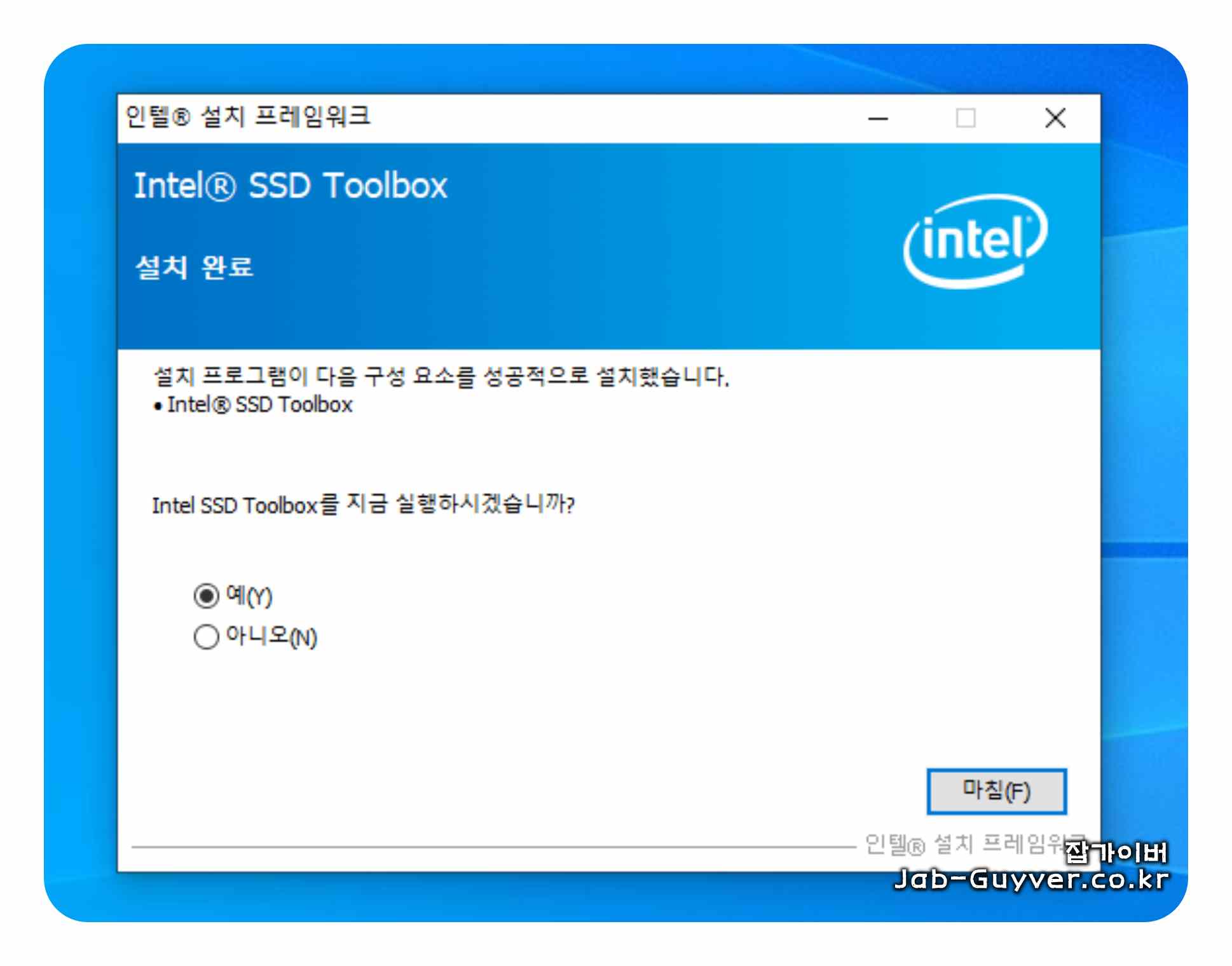 설치가 완료되면 Intel SSD Toolbox를 실행합니다.