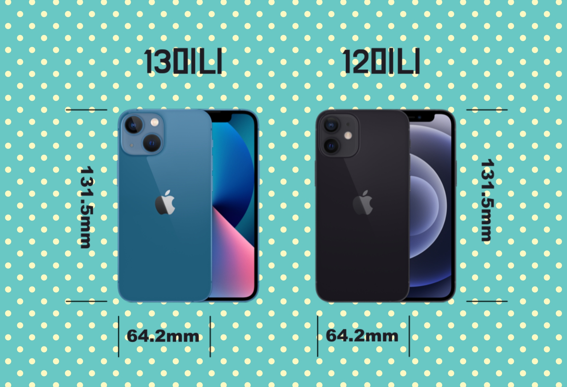 아이폰12 미니와 아이폰13 미니는 렌즈 구성과 조리개 값은 동일하며, 이미지 센서 크기의 차이가 있습니다.