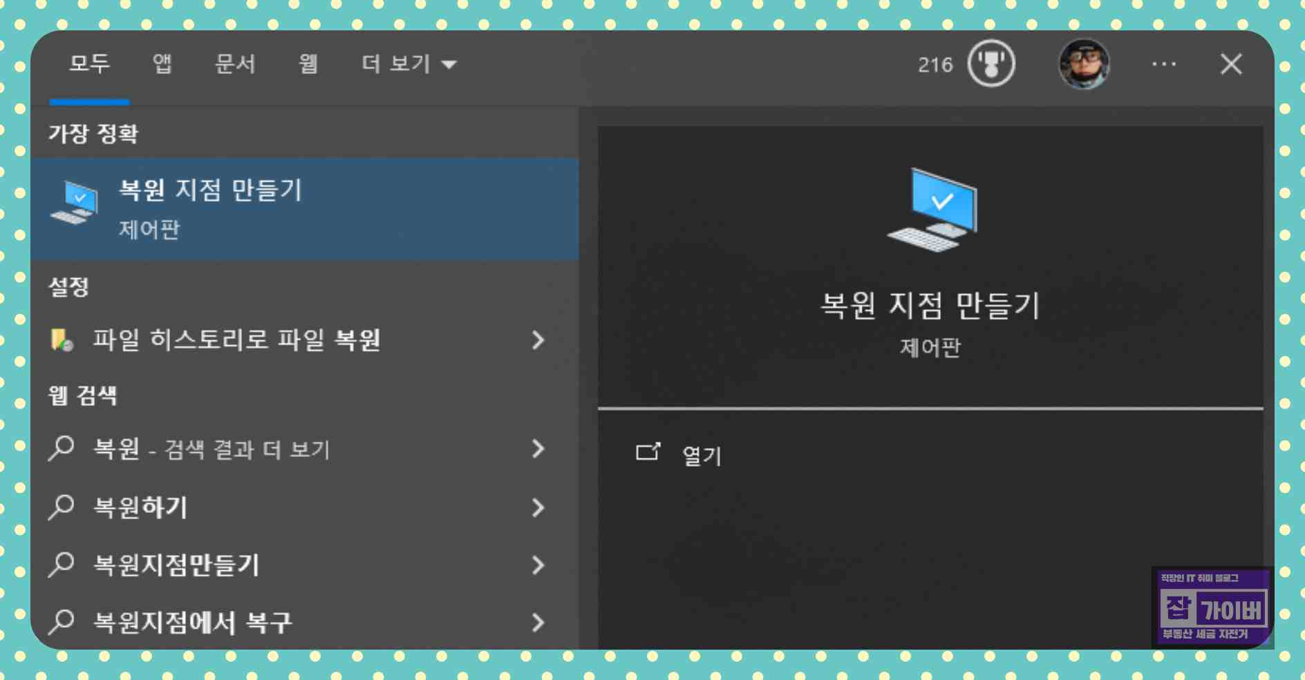 복원 지점 만들기로 들어갑니다.
