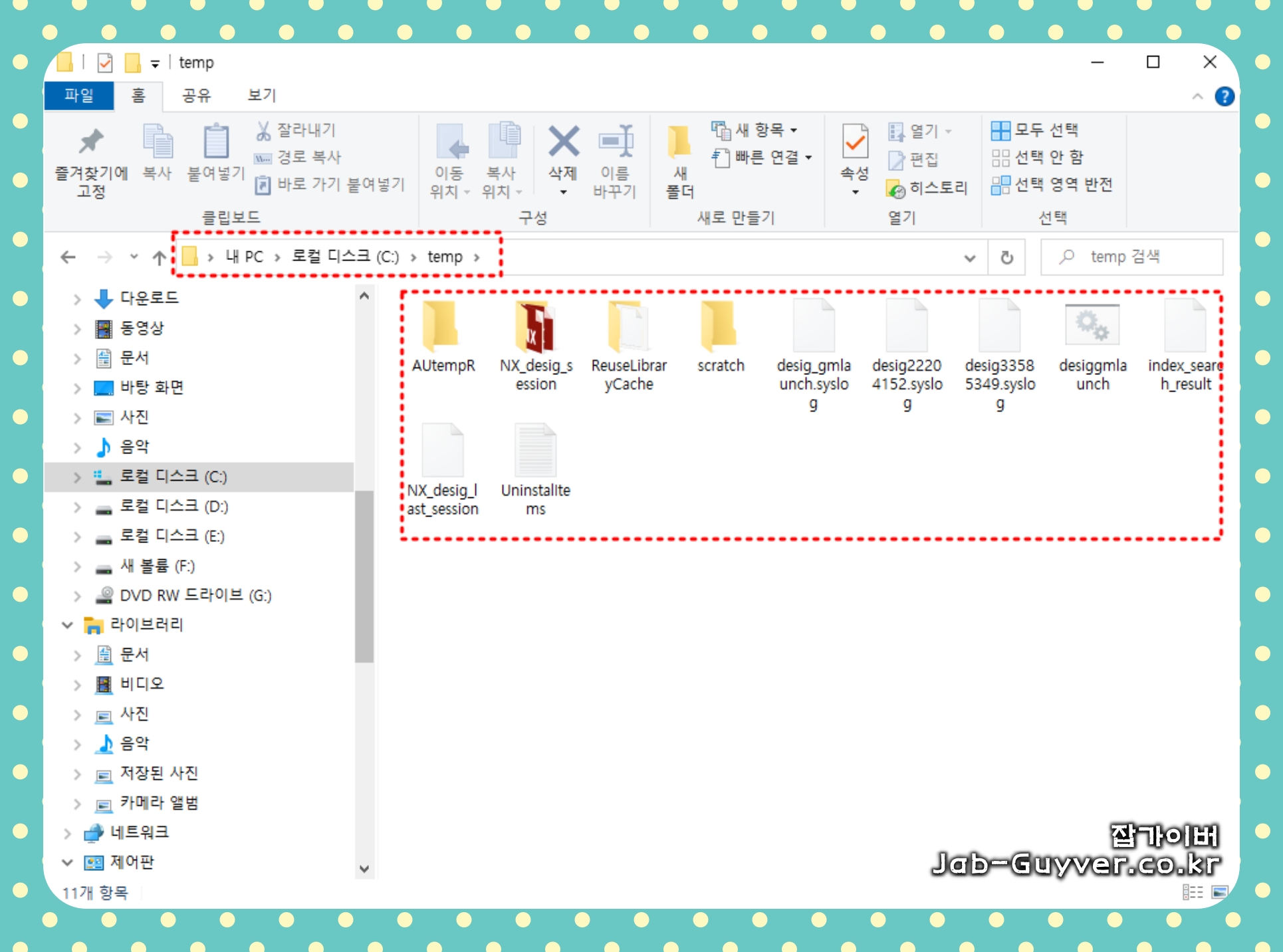 이 폴더에는 사용하지 않는 임시 파일이 쌓일 수 있으므로 주기적으로 정리하는 것이 좋습니다. "Temp" 폴더로 이동하여 더 이상 필요하지 않은 파일을 삭제하거나, "디스크 정리 도구(Disk Cleanup)"를 사용하여 임시 파일을 삭제할 수 있습니다.