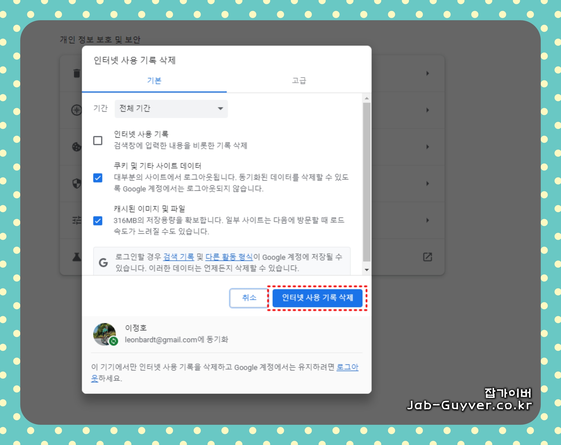 인터넷 캐시 및 쿠키 방문기록 삭제