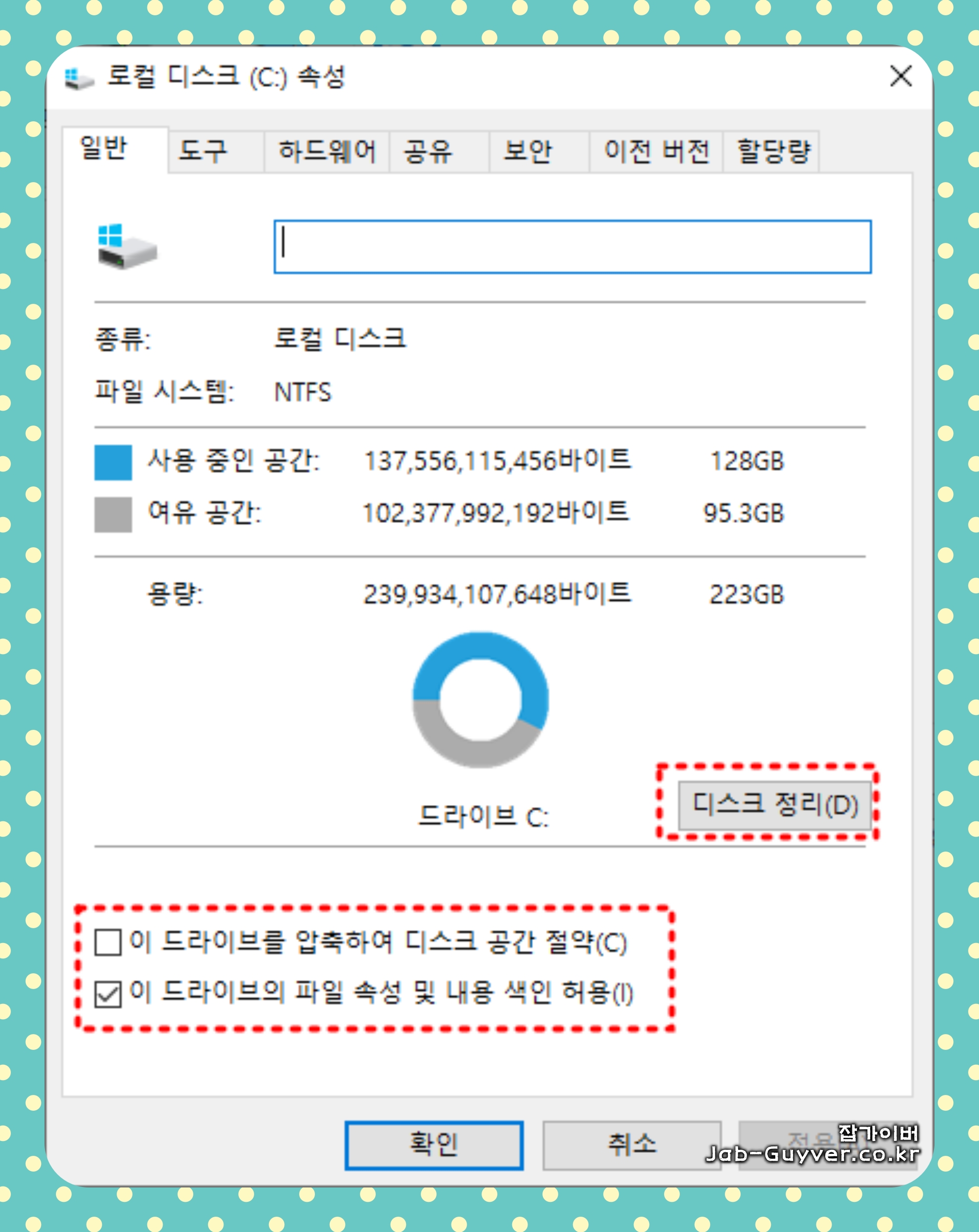 디스크 정리를 실행하는 방법은 다음과 같습니다: