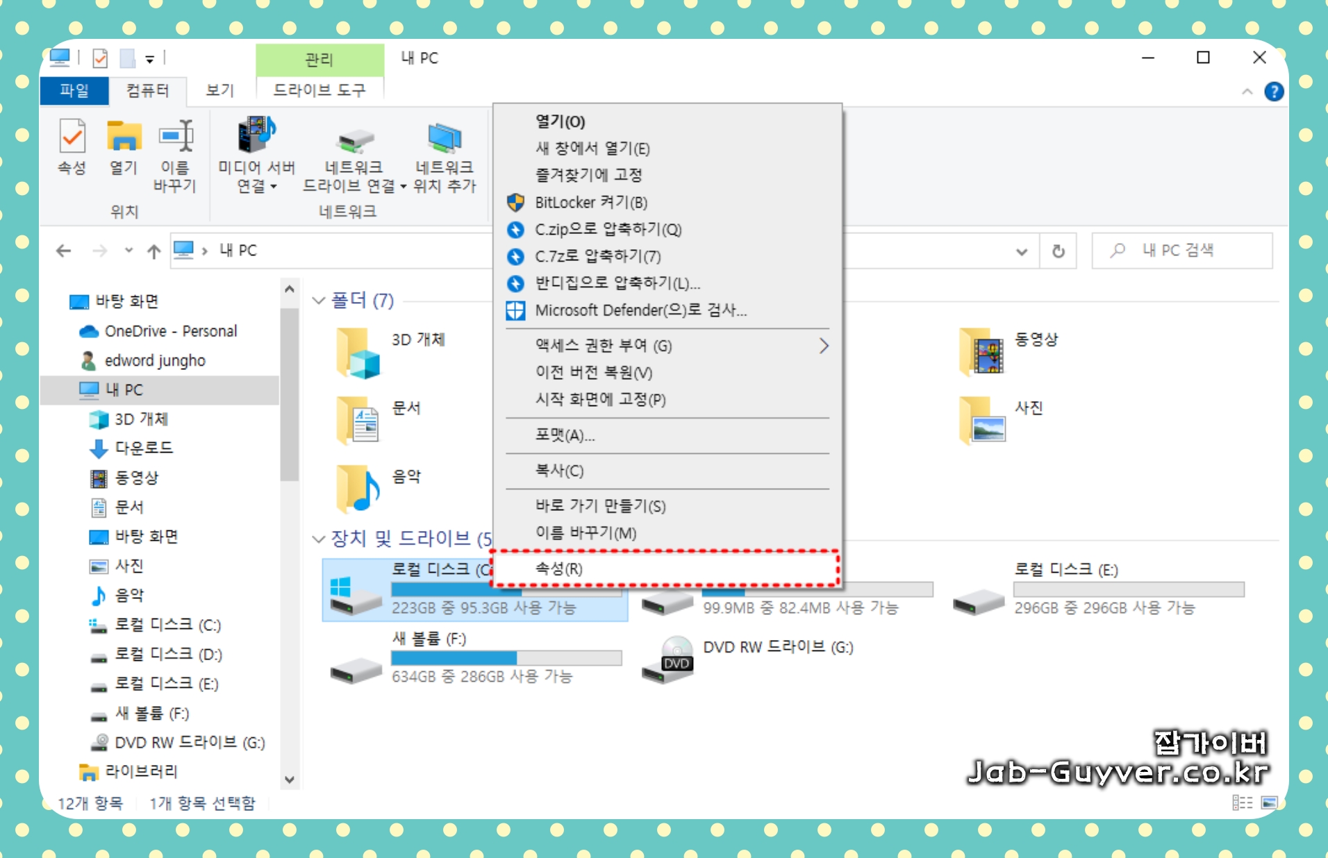 "디스크 정리 도구(Disk Cleanup)" 외에도, 탐색기를 사용하여 파일 및 폴더를 직접 확인하고 정리할 수도 있습니다.