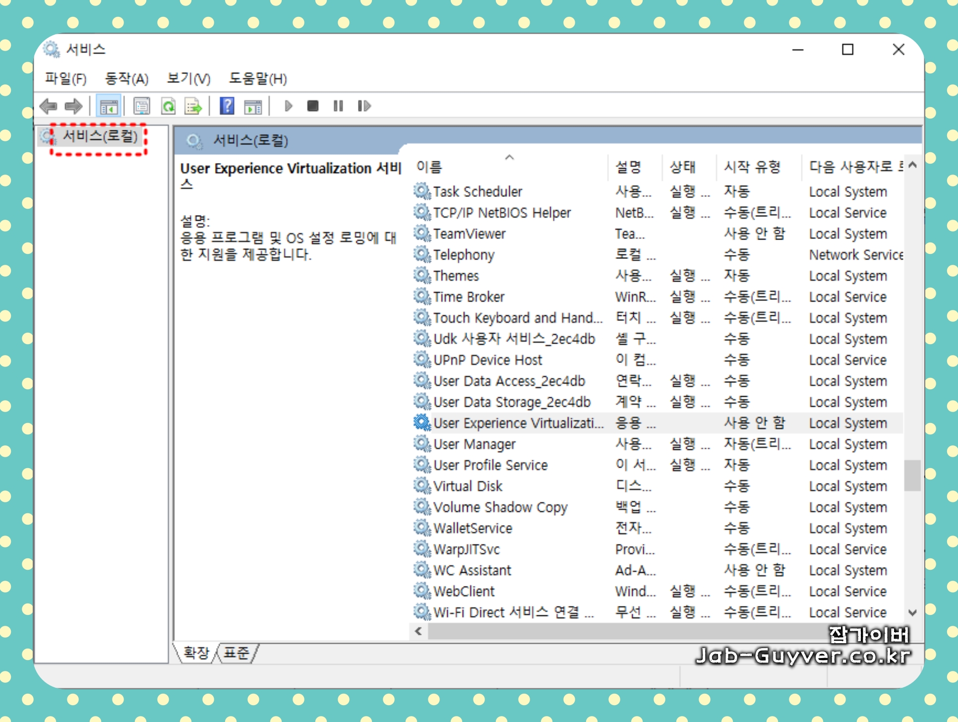 단, 프로그램 버전이나 운영체제에 따라 서비스의 이름이 다를 수 있으므로 주의해야 합니다.