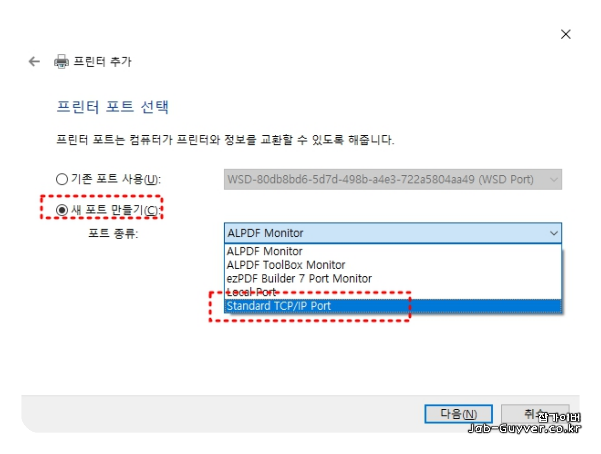 프린터 IP주소 확인 - 수동설치 TCP 추가 네트워크 연결설정