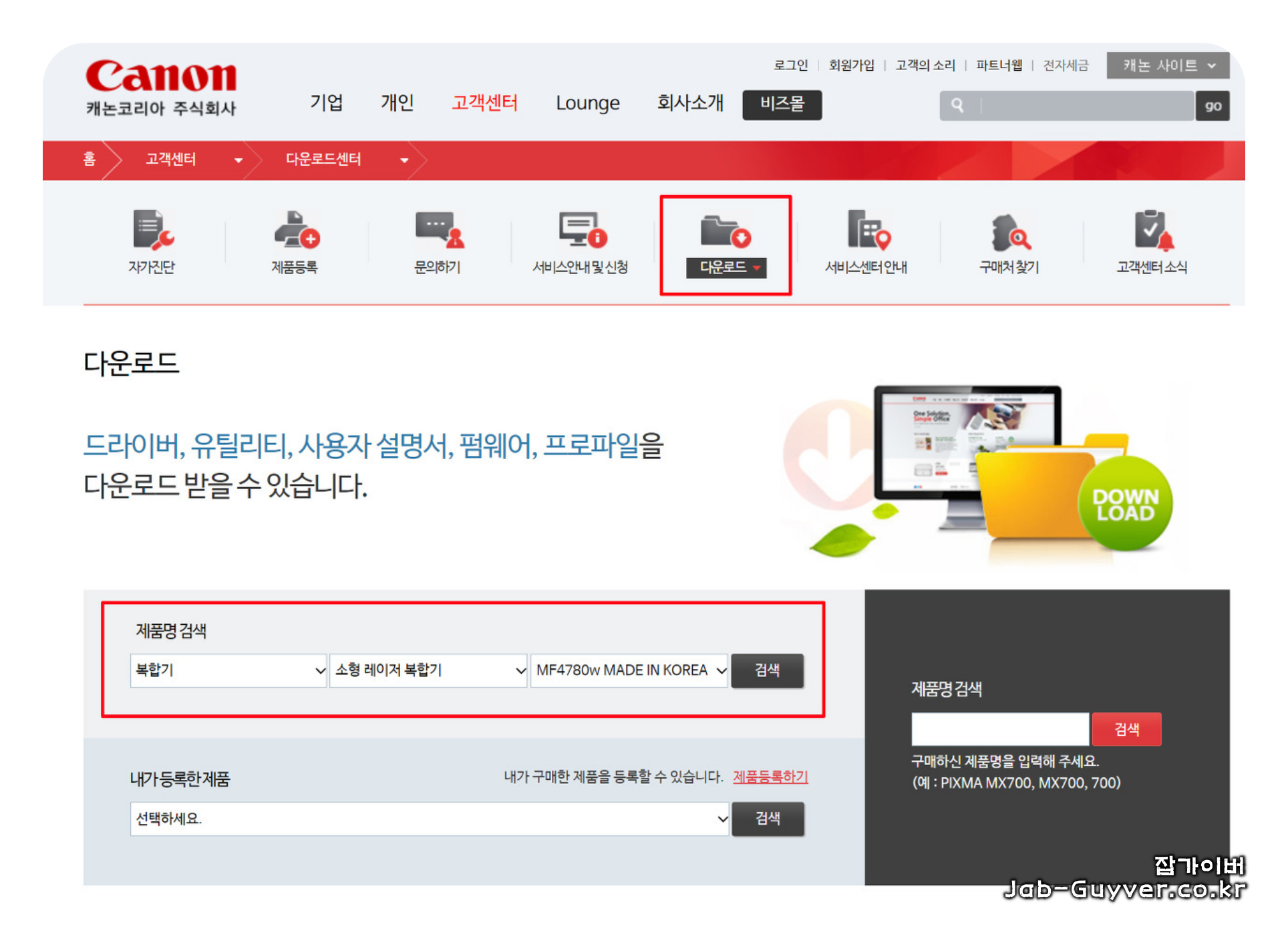 캐논 공식 홈페이지 - 프린터 드라이버 다운로드