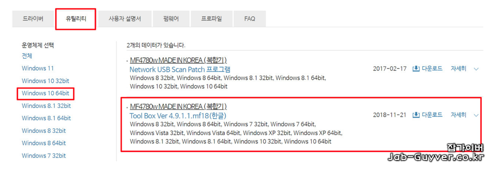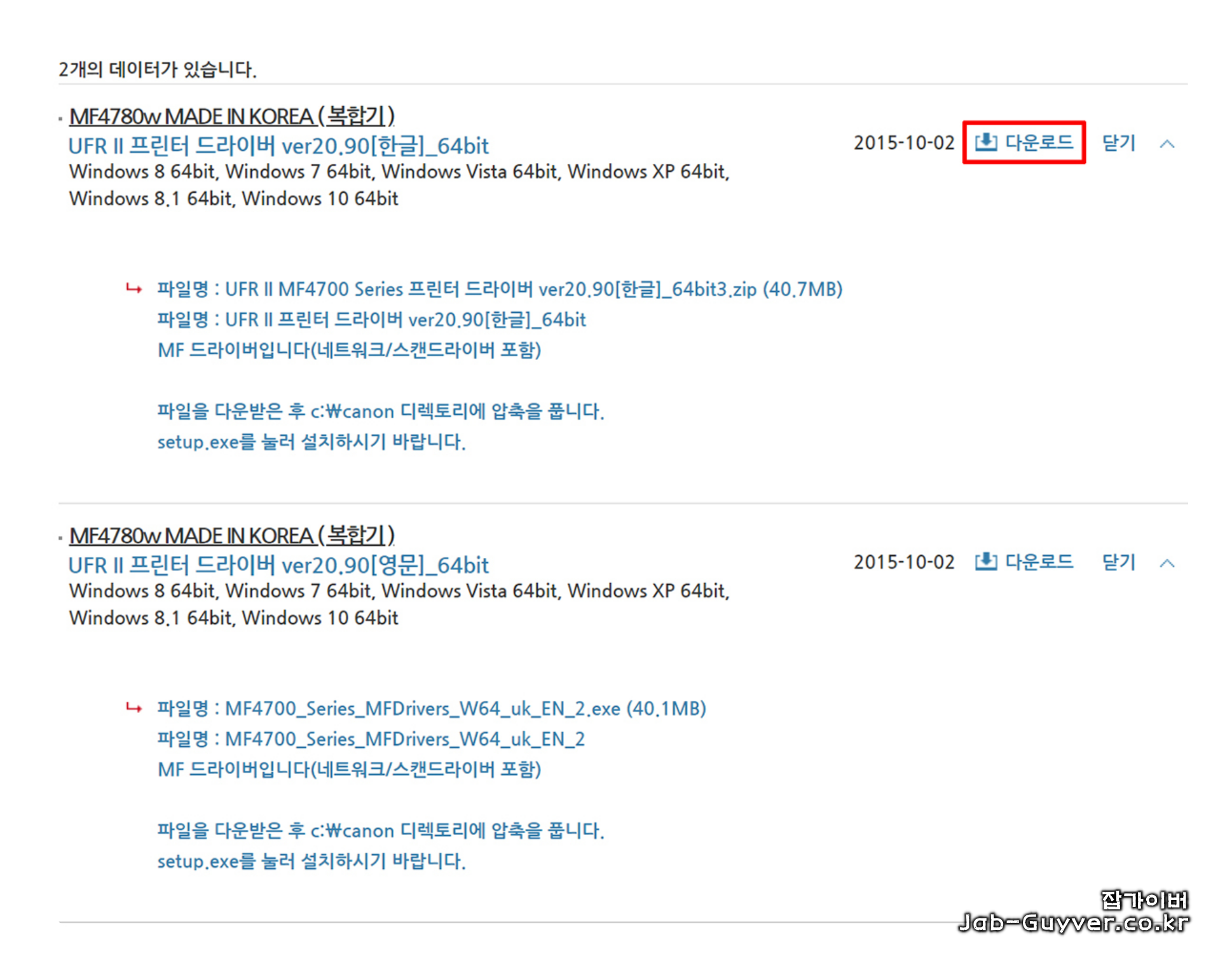 검색 결과에서 해당 운영체제에 맞는 캐논 프린터 드라이버를 찾아야 합니다.