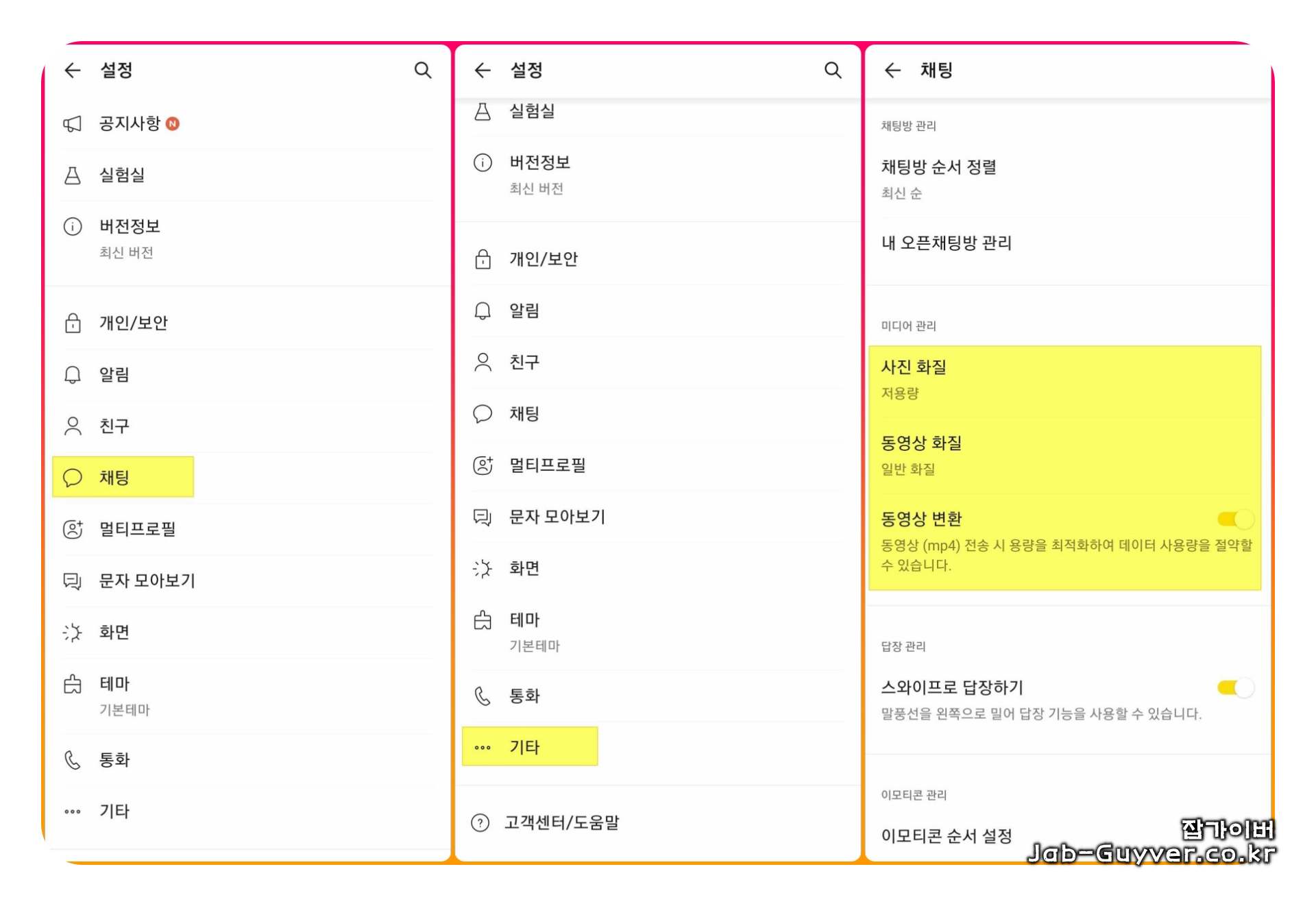 카카오톡 사진 및 동영상 화질 압축 설정