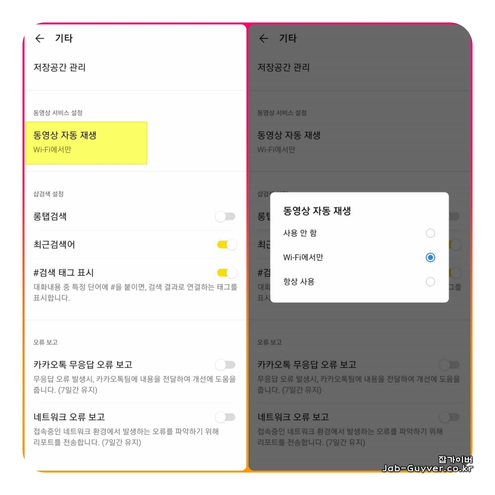이를 통해 동영상이 자동으로 재생되는 것을 제어하여 핸드폰 모바일데이터를 절약할 수 있습니다.