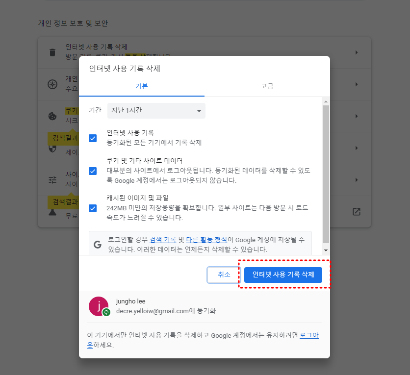 인터넷 사용기록 삭제
