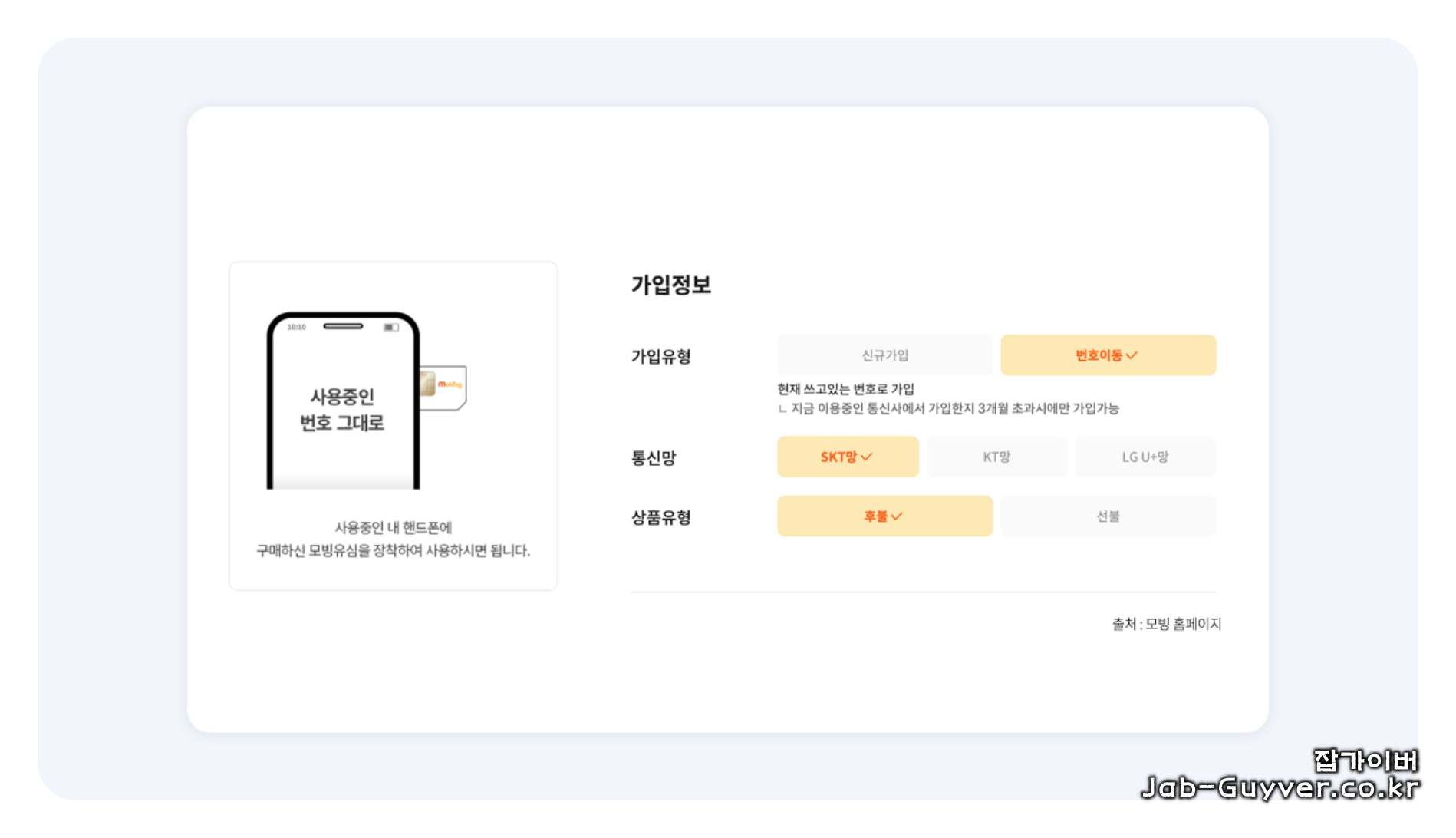 - 통신사 선택: 원하는 통신사와 요금제를 선택.
