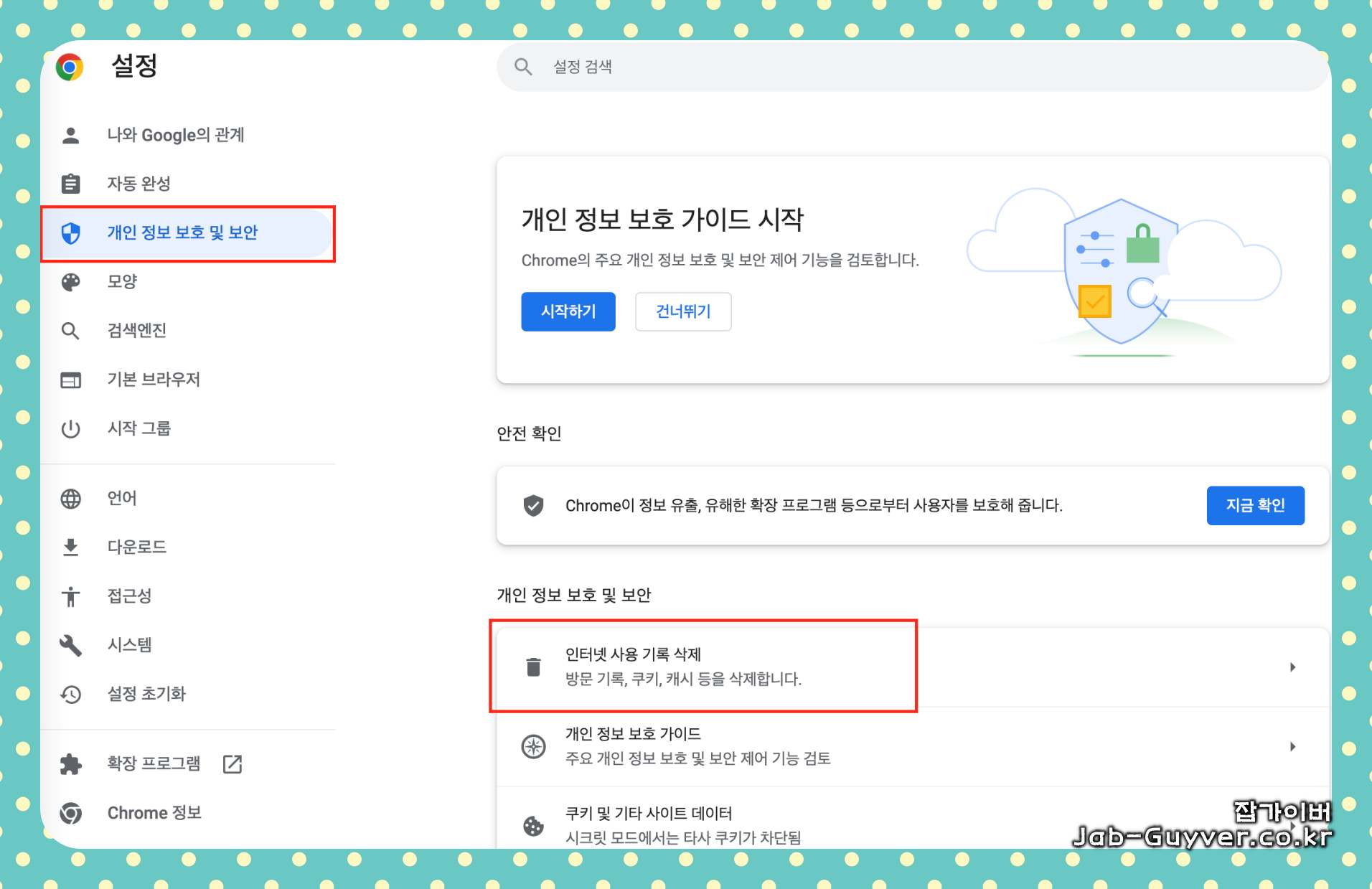 구글크롬 쿠키 및 캐시 방문기록 삭제