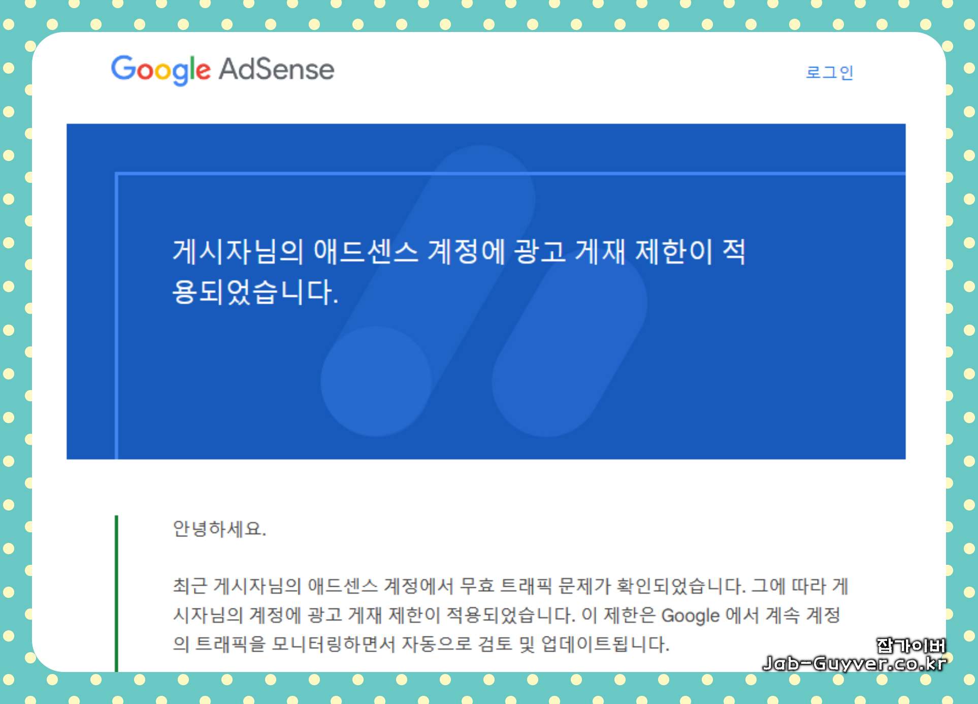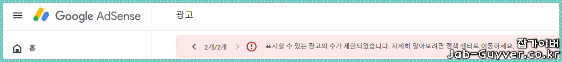 구글 애드센스 계정에 일시적인 광고 게재 제한이 적용되었습니다.