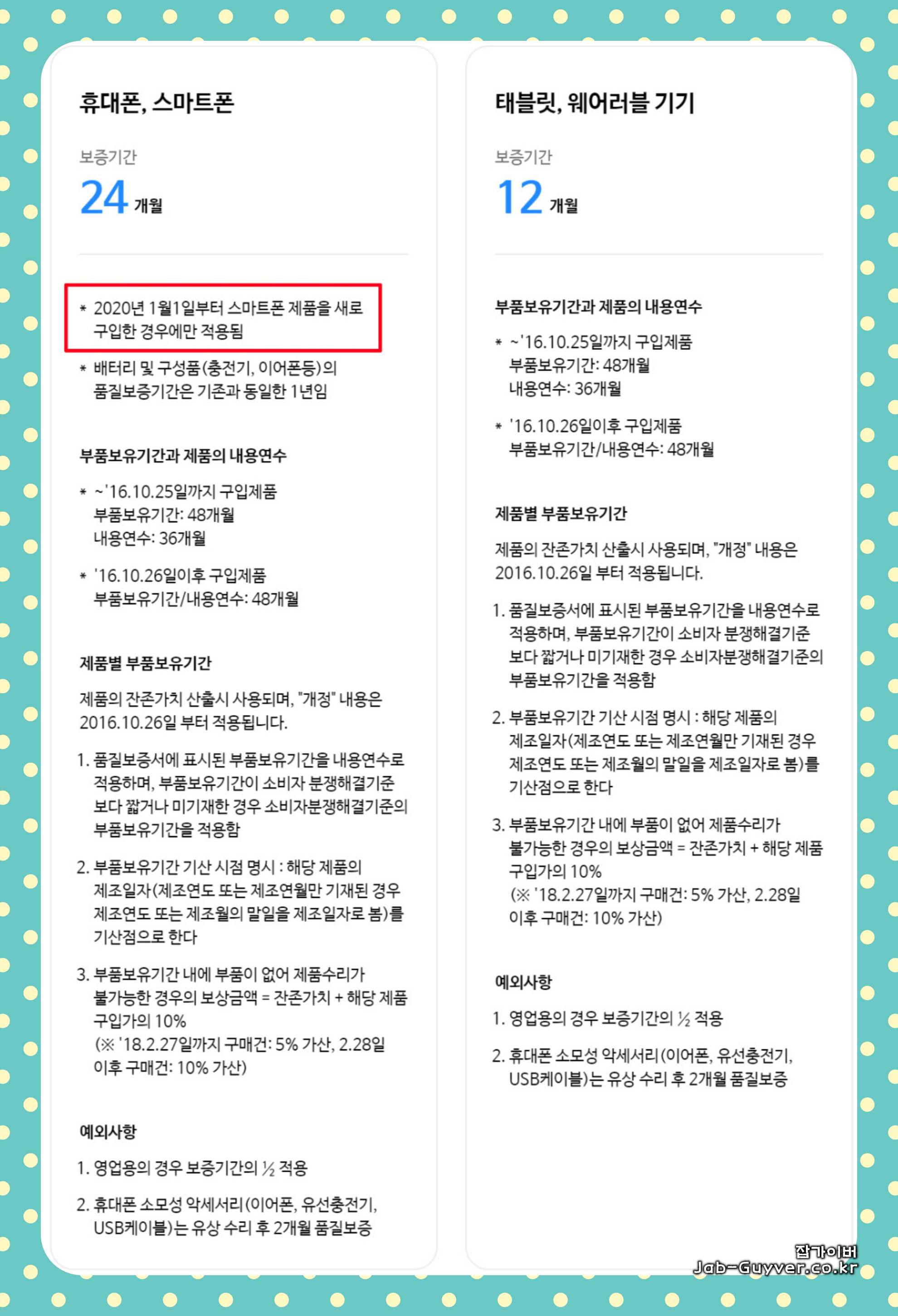 2020년 1월 1일부터 시행된 법률에 따라, 갤럭시 휴대폰의 무상 보증 기간이 2년으로 연장되었습니다.
