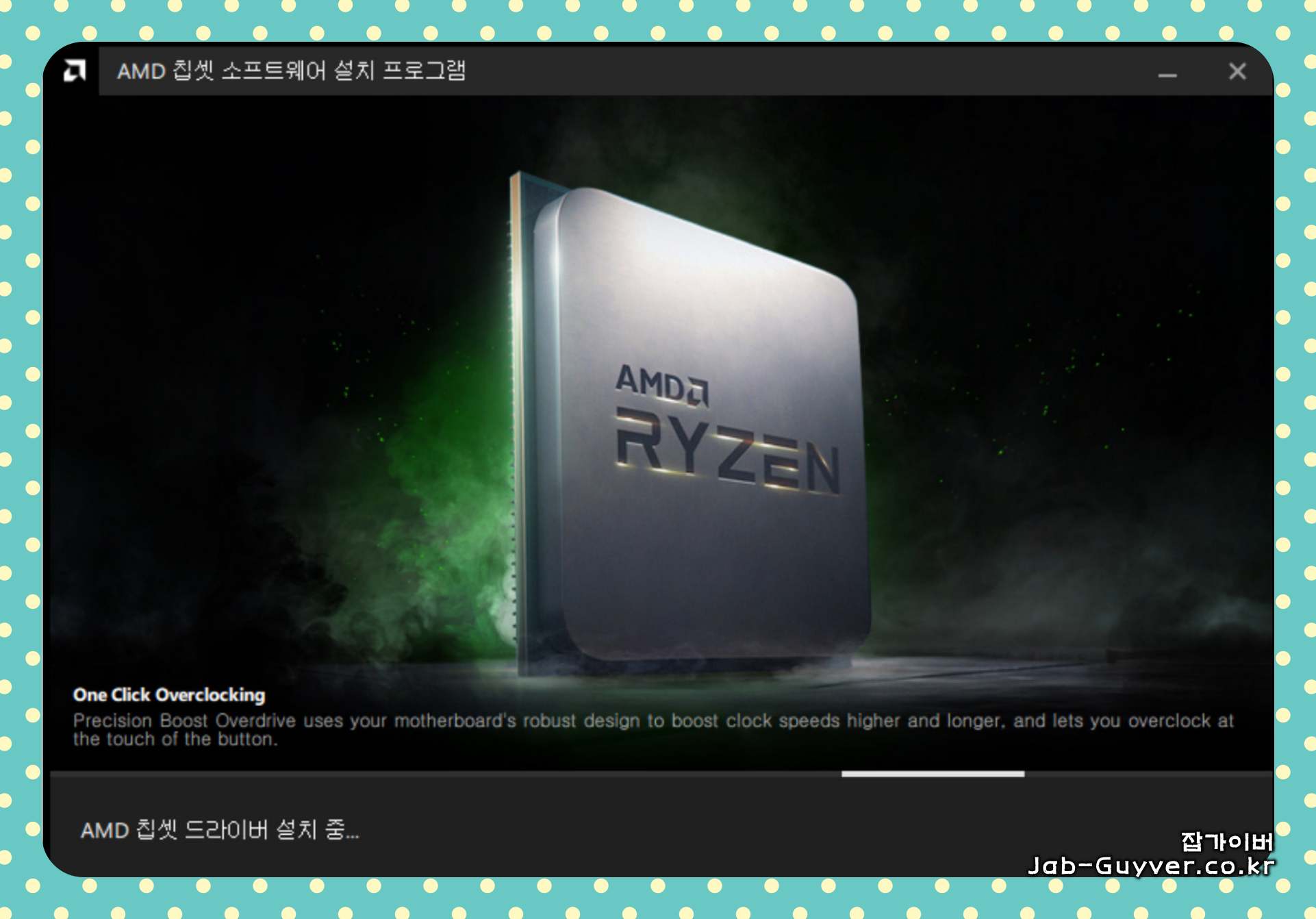 다운로드한 드라이버 파일을 더블클릭하여 실행하면 AMD 칩셋 소프트웨어 설치 프로그램이 실행됩니다.