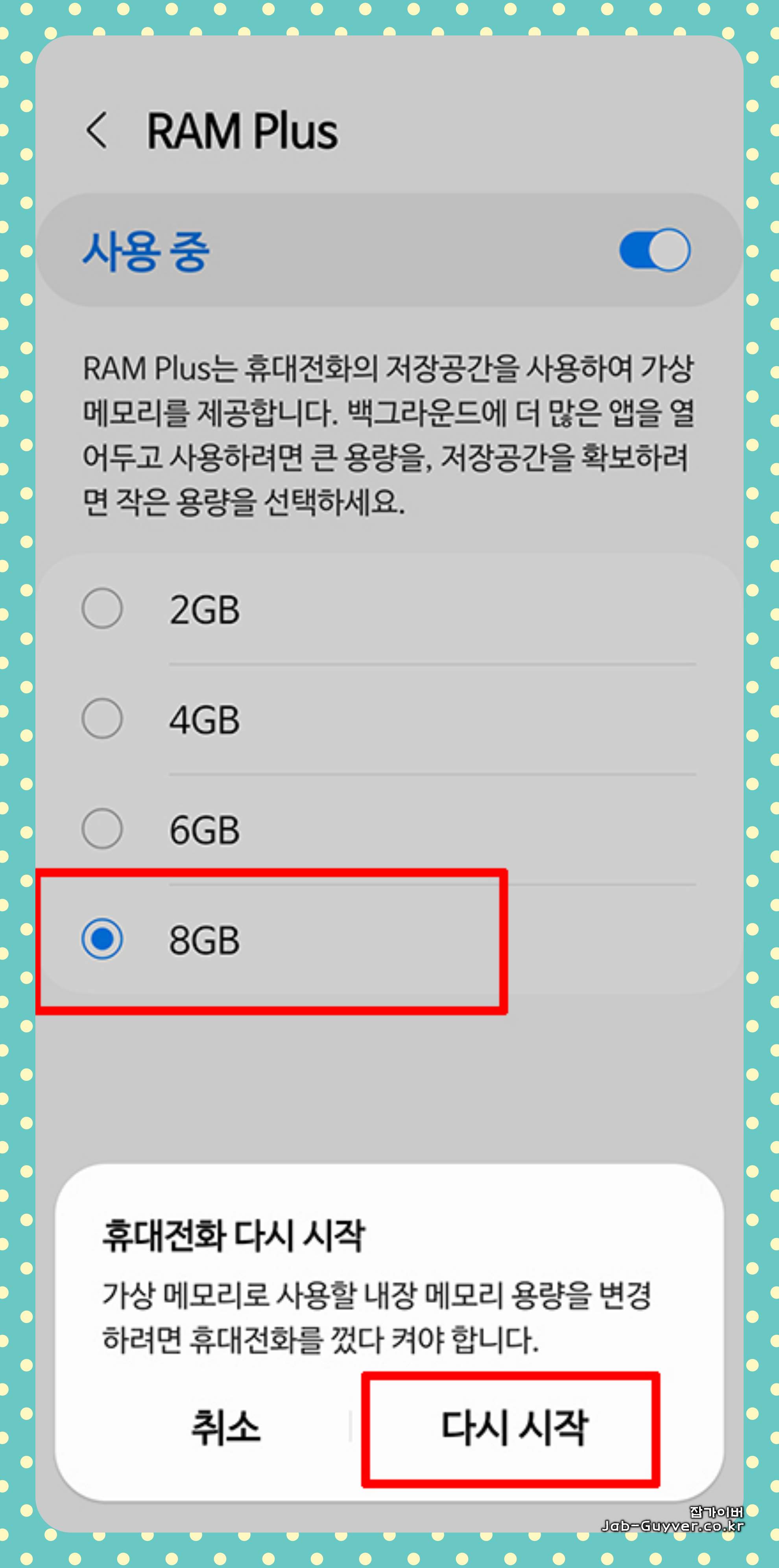 갤럭시 가상 메모리(램플러스) 설정 방법