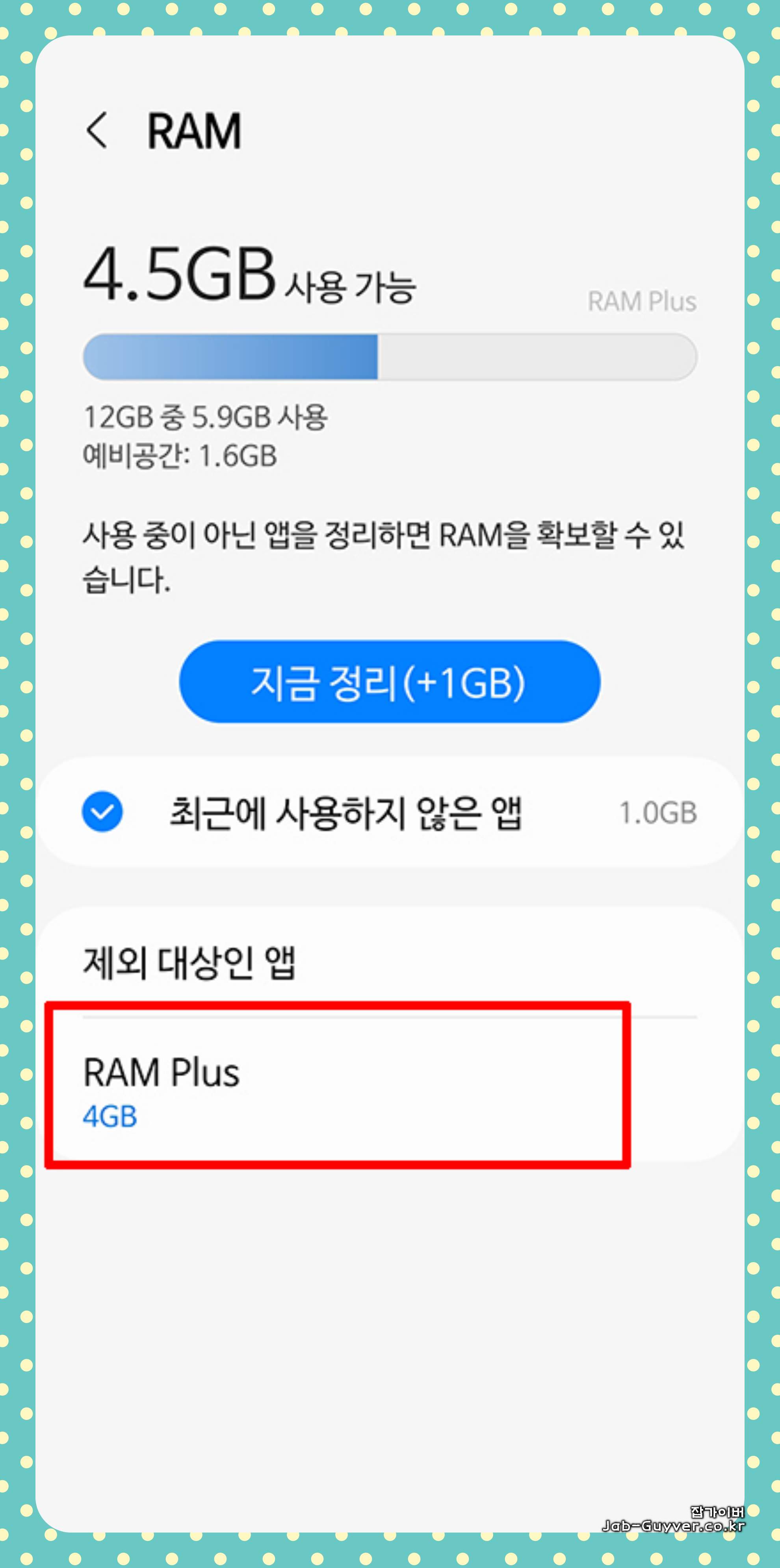 갤럭시 핸드폰 메모리 부족·느려짐 – 가상램 추가 램플러스 이해하기