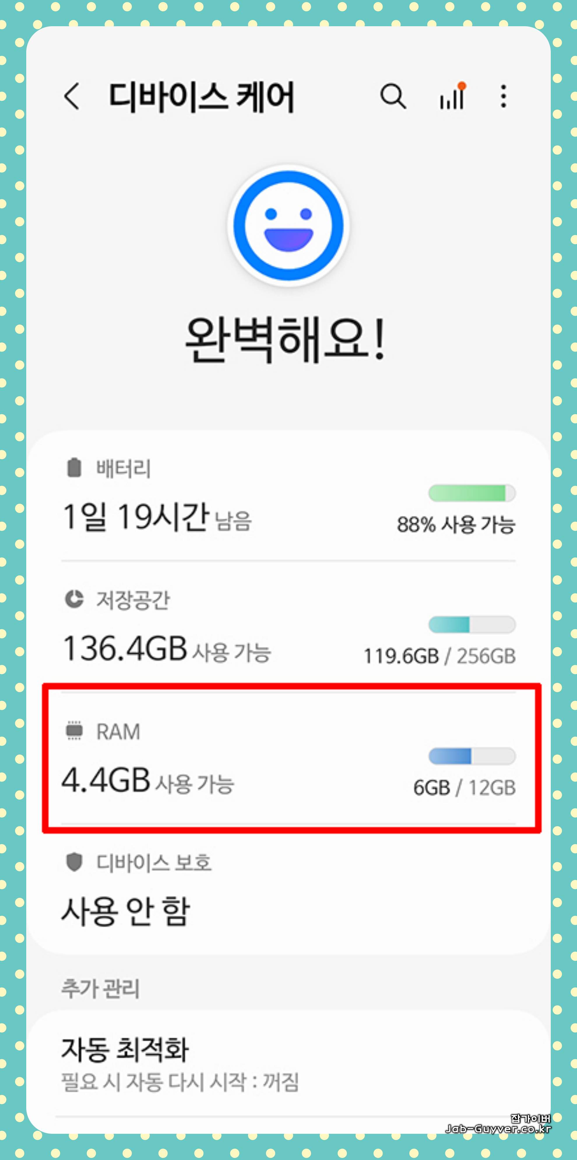 디바이스 케어로 갤럭시 기본 최적화 먼저 해주기