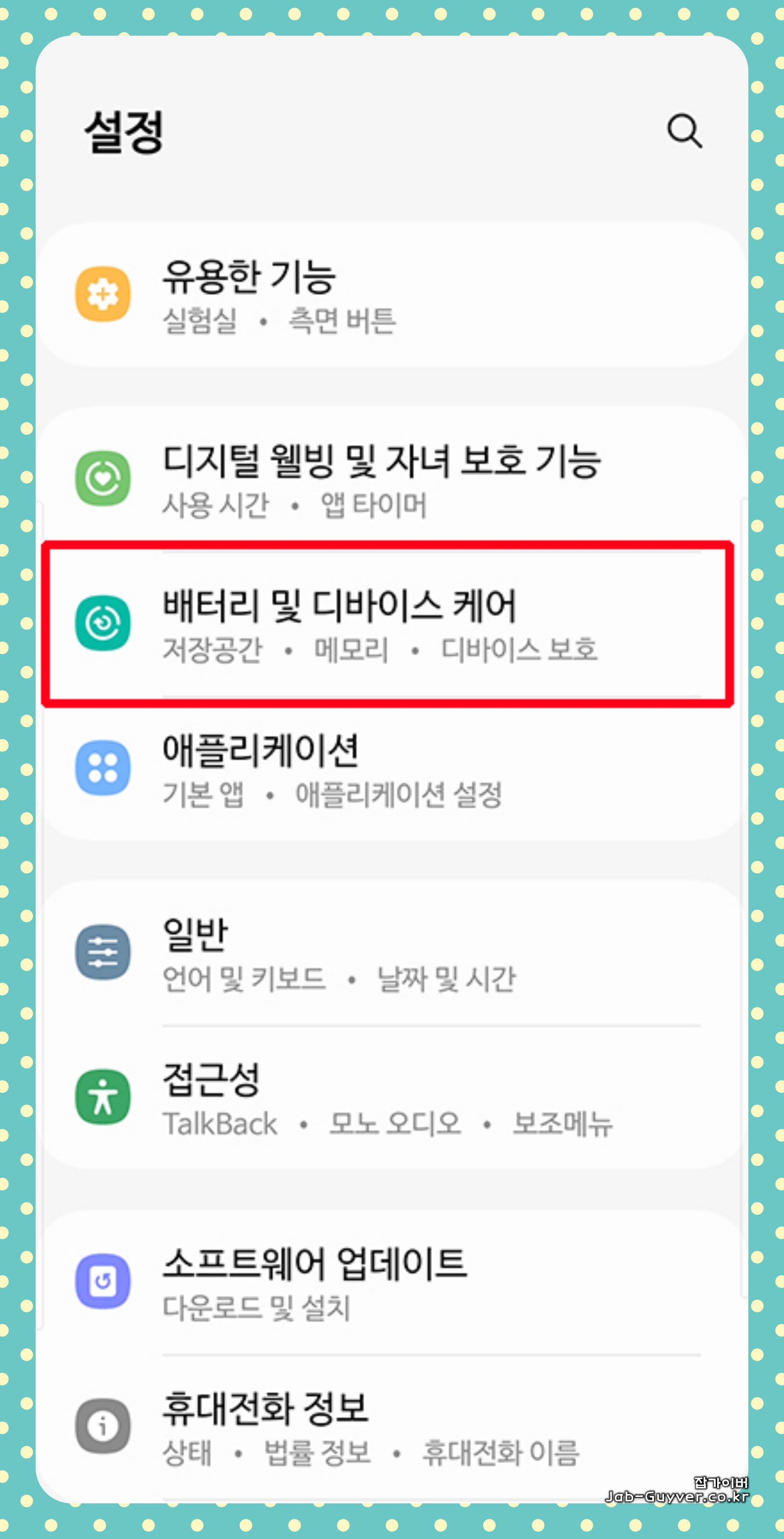 삼성 One UI 버전에 따라 메뉴 이름이 조금 다를 수 있지만 “수리모드”라는 항목 자체는 비교적 눈에 잘 띄는 편입니다.