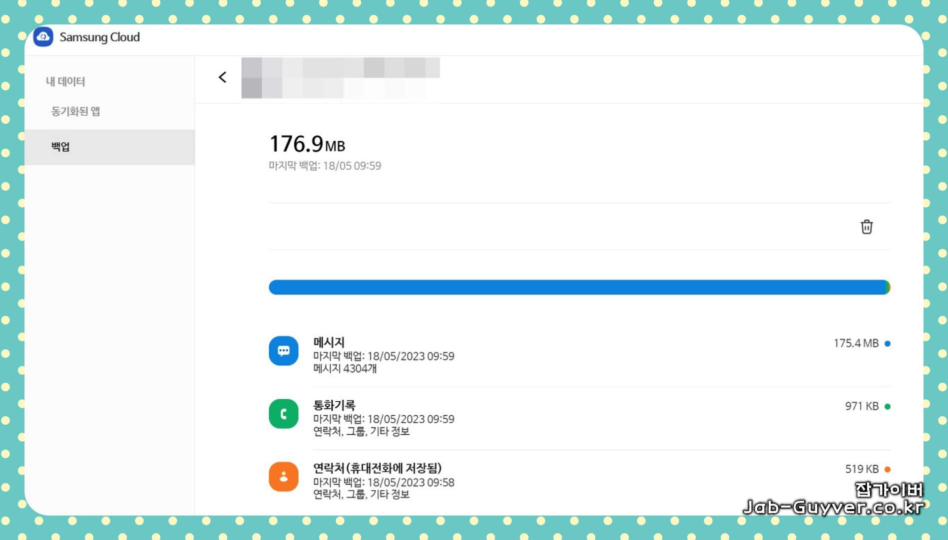 삼성 클라우드를 통한 백업은 갤럭시 폰의 전체 백업이 아니라, 주로 통화 목록,