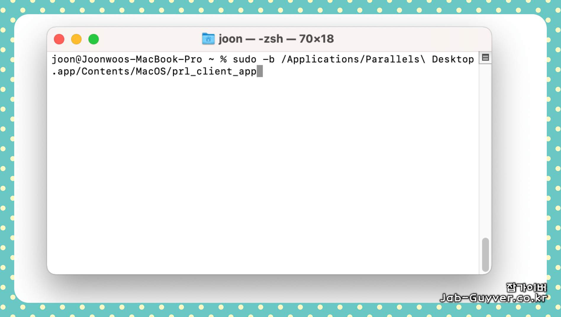 터미널에서 패러럴즈를 실행해 보안 권한 다시 받기