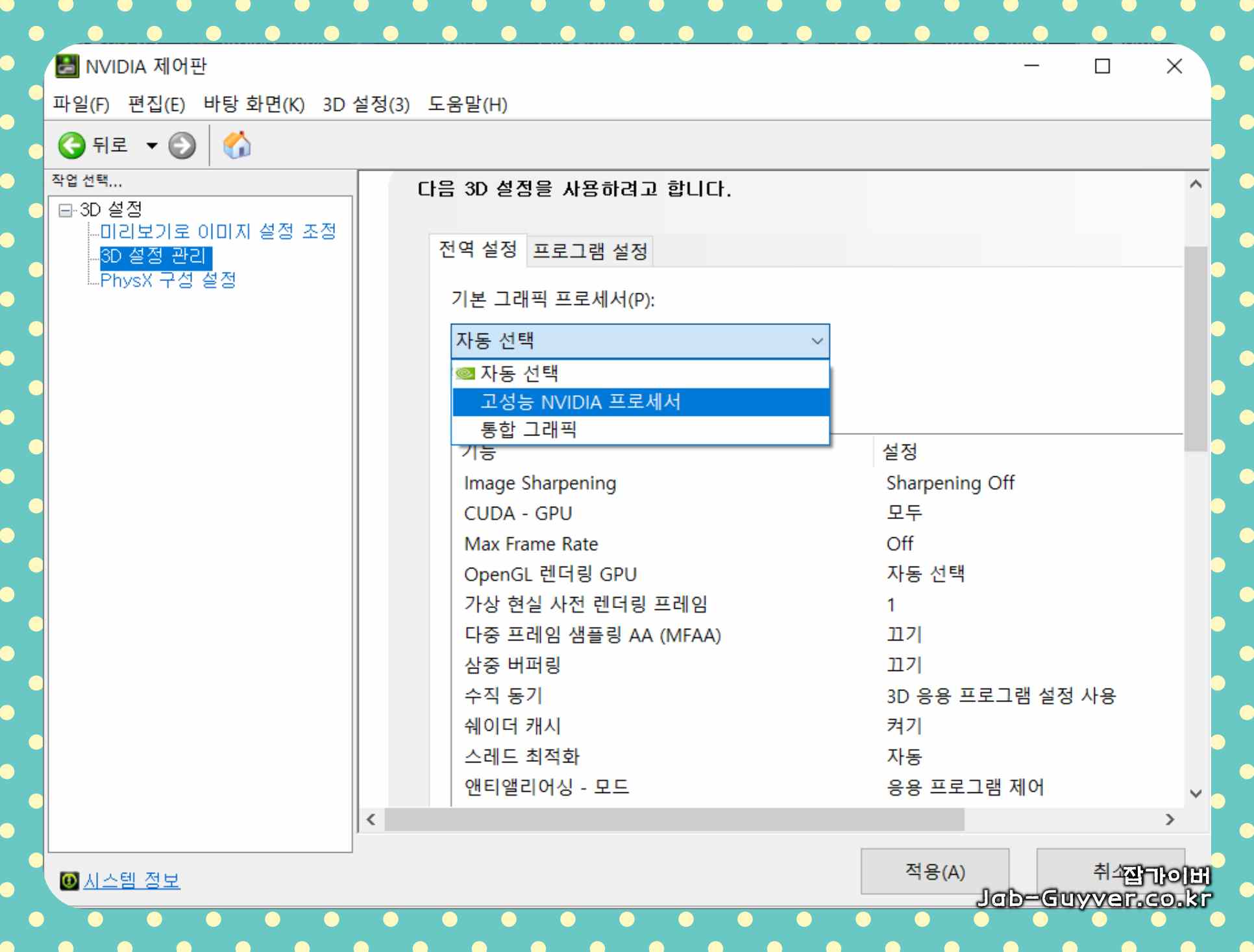 - [IT 리뷰/윈도우 Tip] - 엔비디아 그래픽카드 드라이브 설치 및 Nvidia 제어판 3D게임 최적화 설정