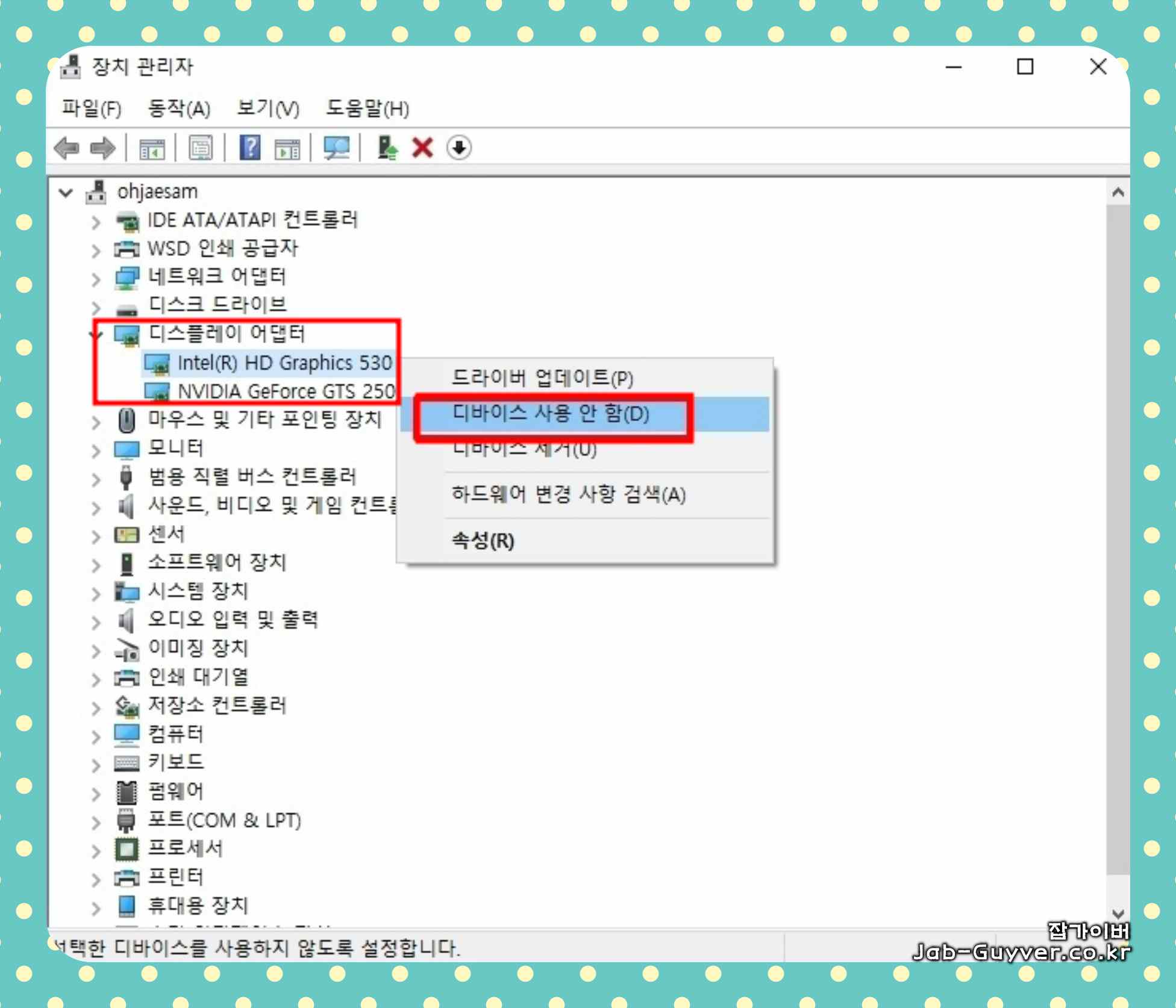 노트북 외장그래픽카드 켜기 내장그래픽카드 비활성화