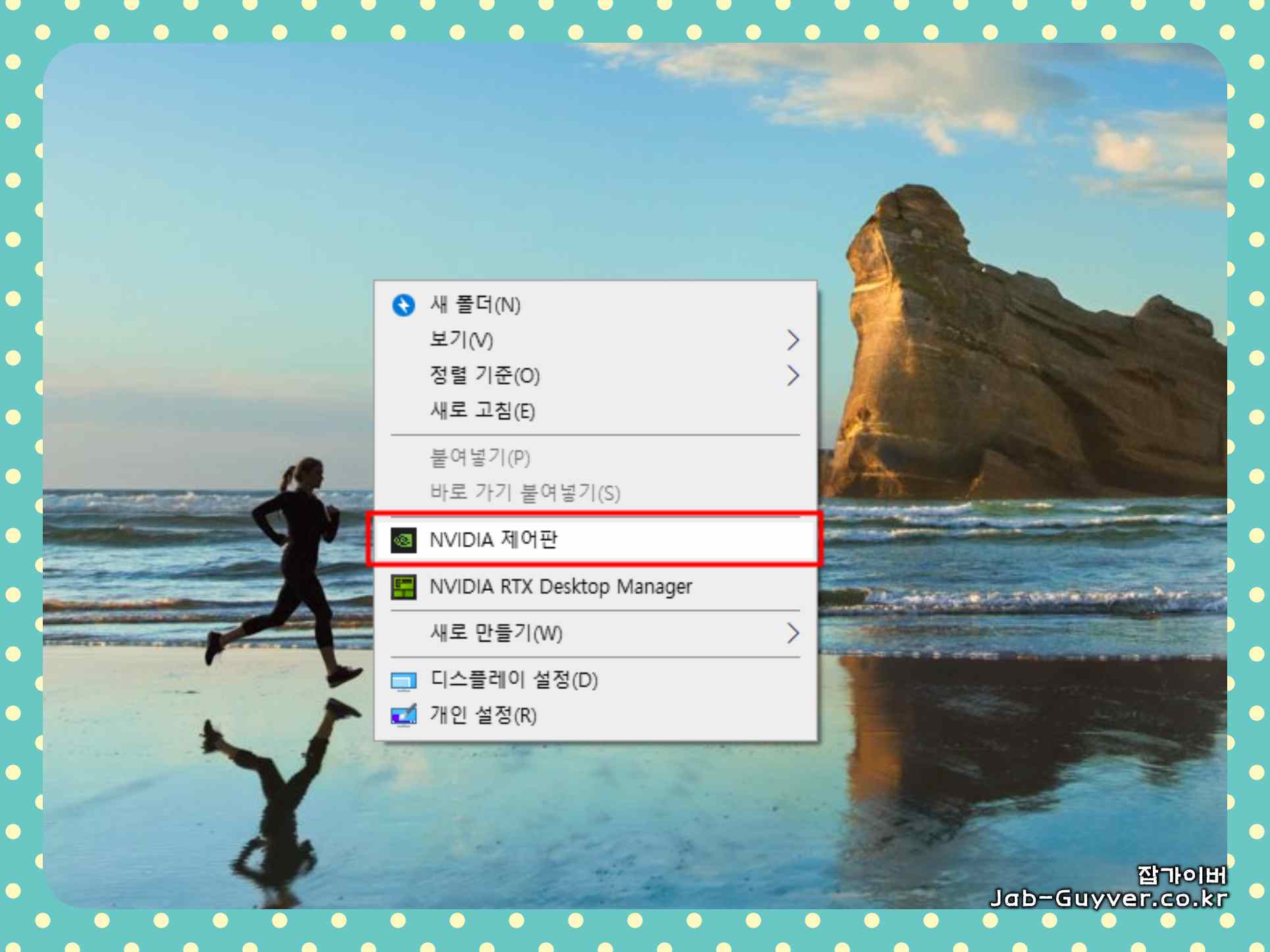먼저, 윈도우 바탕화면에서 마우스 우클릭을 하고 "NVIDIA 제어판"을 선택합니다.
