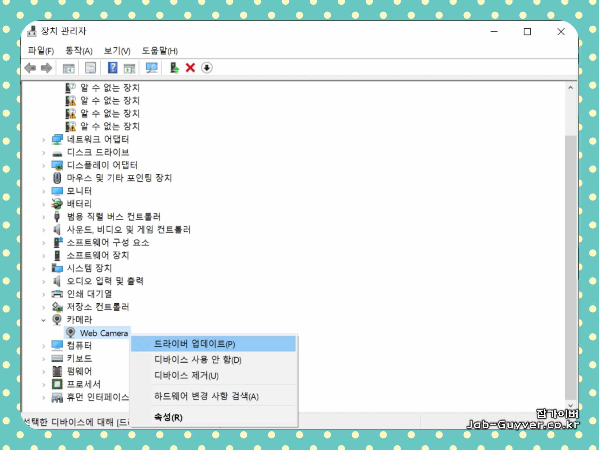 장치관리자 노트북 카메라 드라이브 삭제 및 업데이트