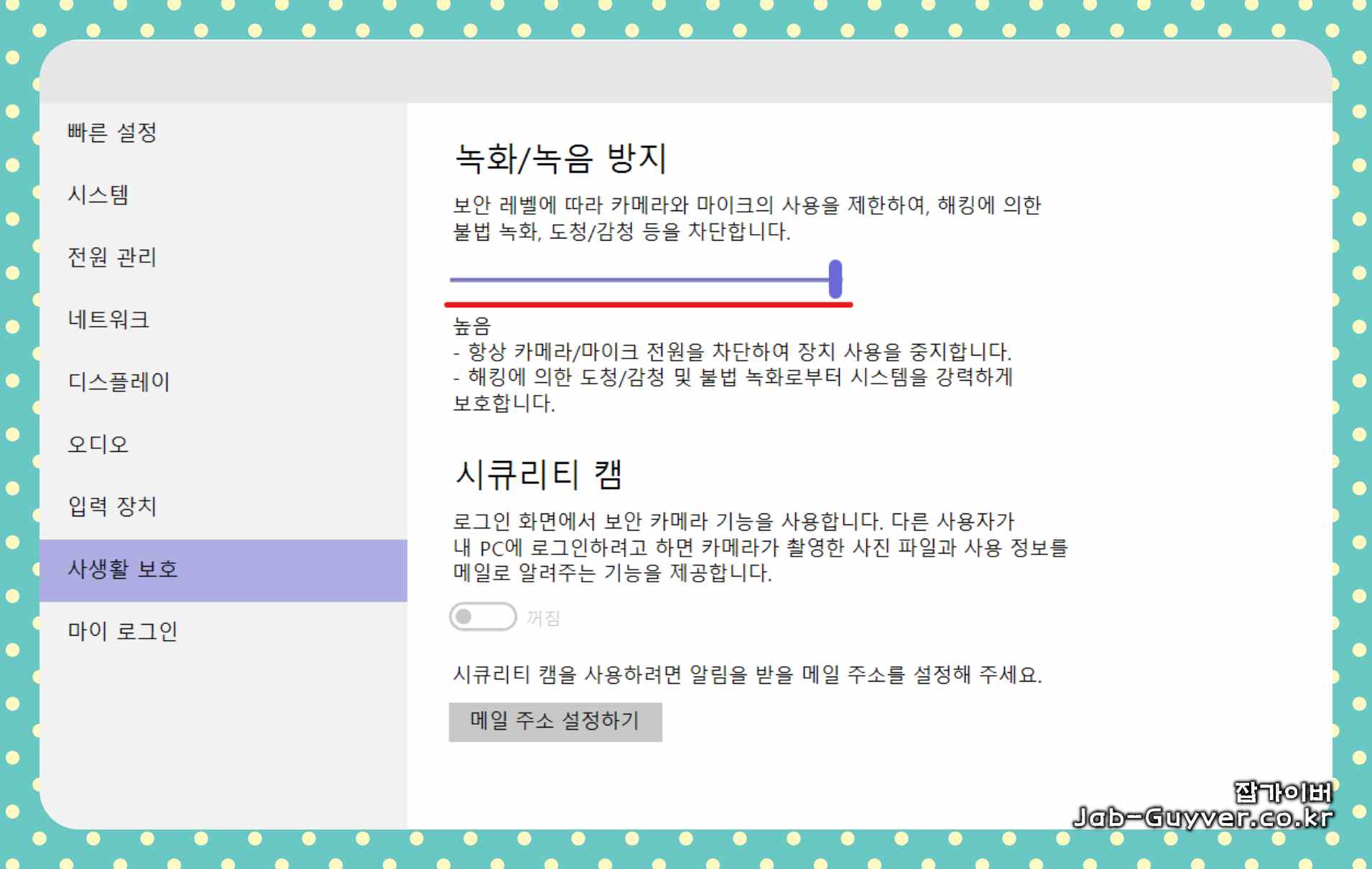 사생활 보호 탭의 녹화/녹음 방지 설정