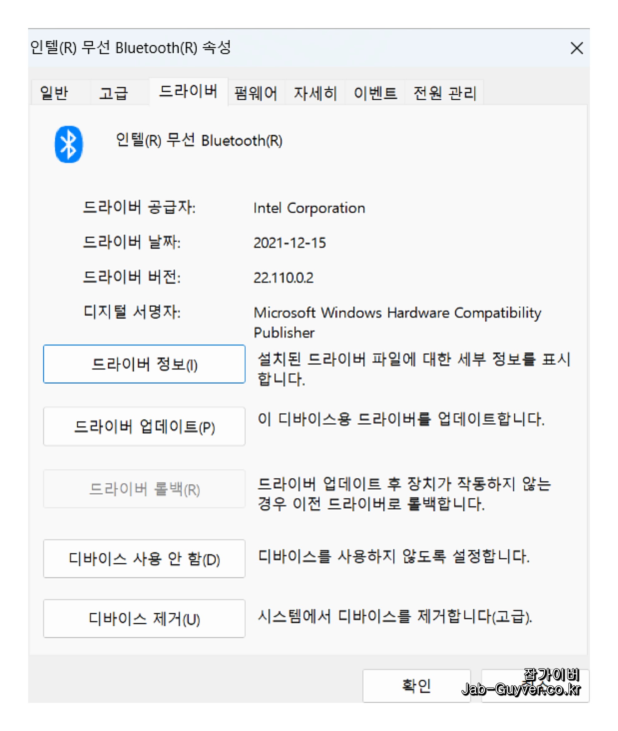 원인: 시스템이 블루투스 장치 구성을 제대로 못 잡았거나, 드라이버가 손상/누락된 상태일 수 있습니다.