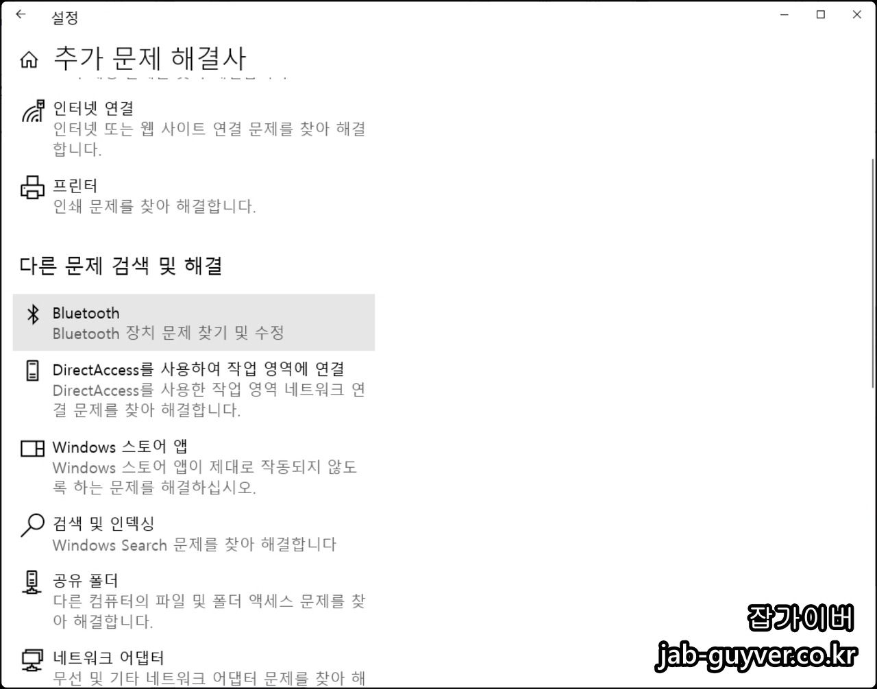 블루투스  연결에 문제가 있다면 윈도우 추가 문제해결사를 통해 오류를 찾아 자동복구합니다.